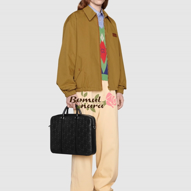 [스페셜오더]GUCCI-658573 1000 구찌 블랙 GG 엠보스 서류 가방