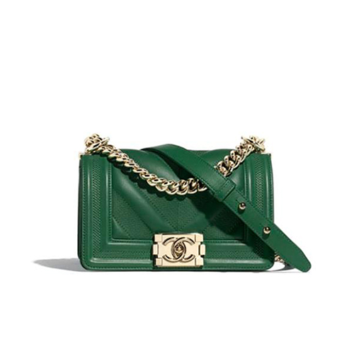 [스페셜오더]CHANEL-A67085 샤넬 그린 카프스킨 골드메탈 보이 샤넬 스몰 플랩백