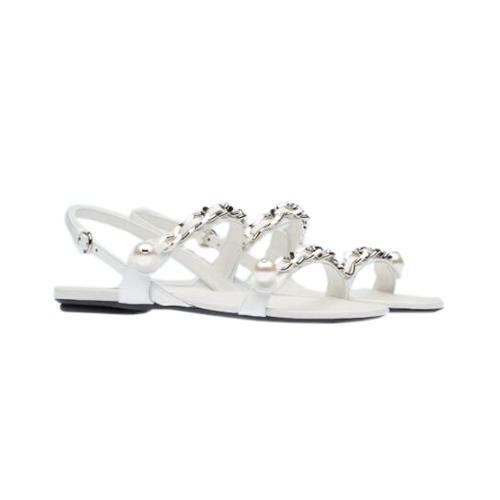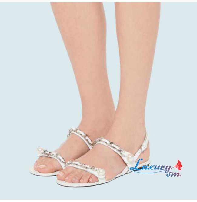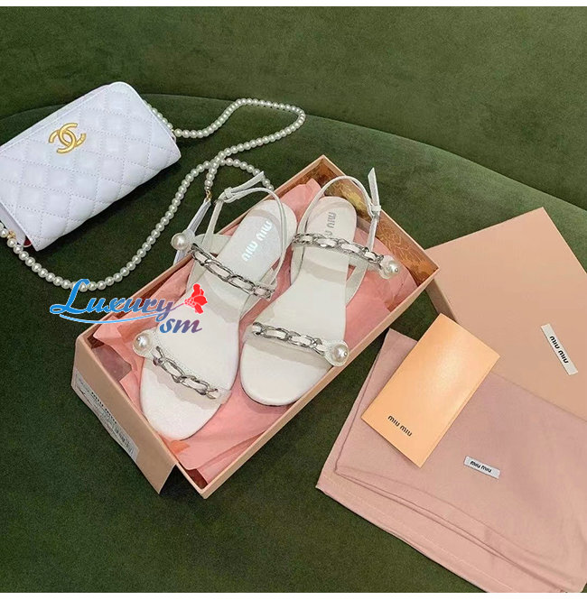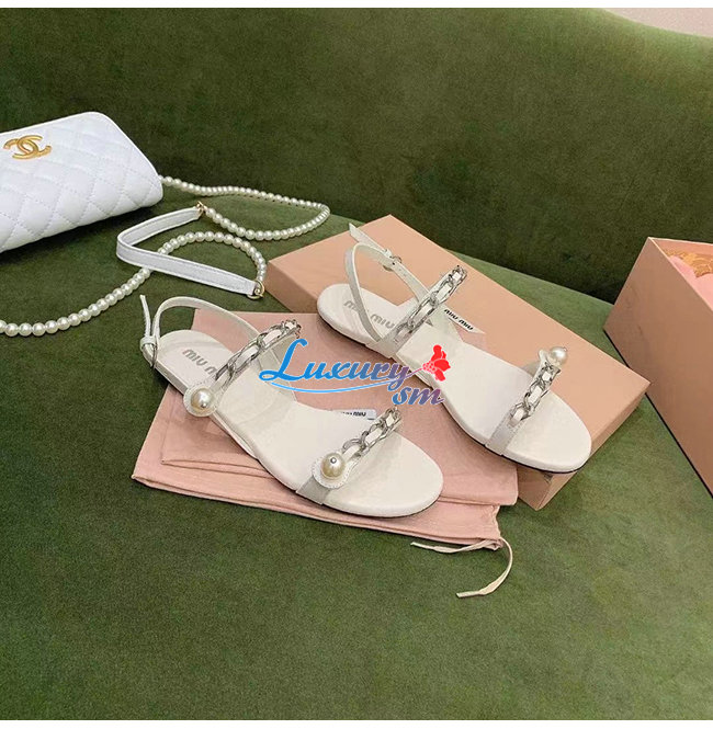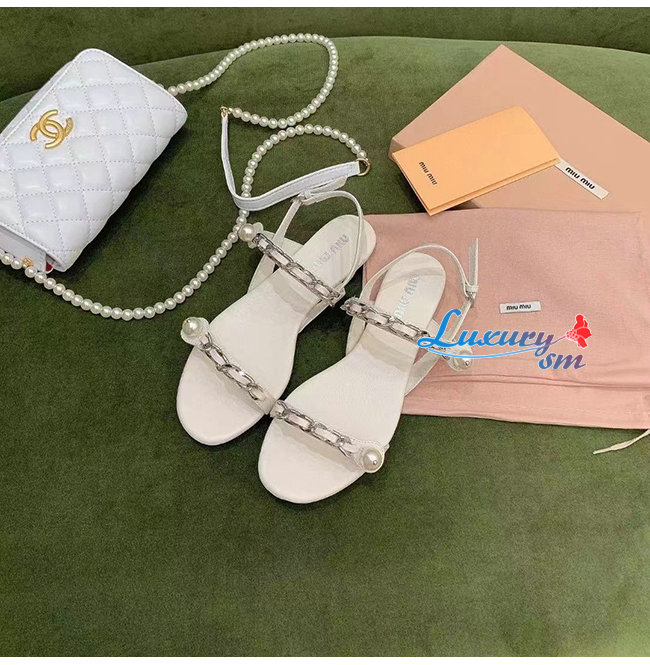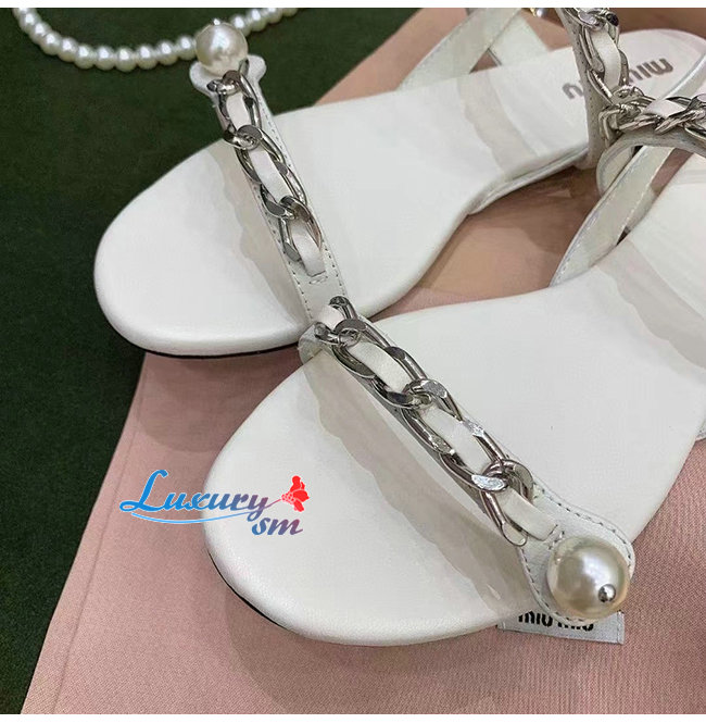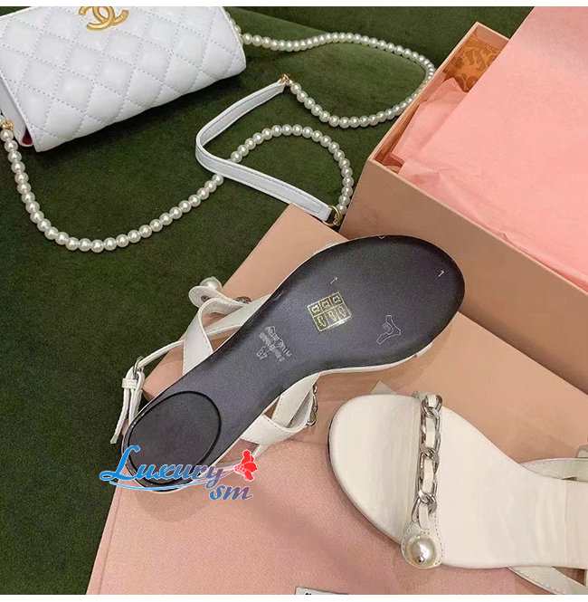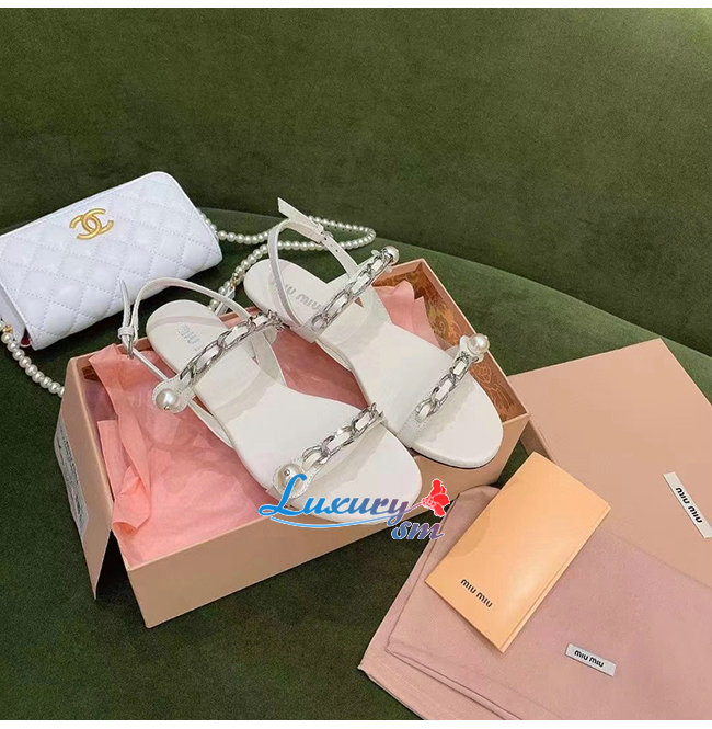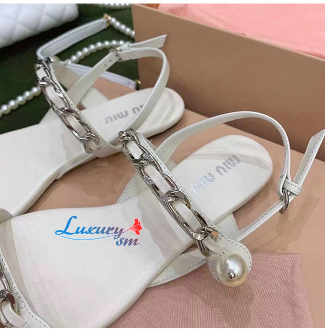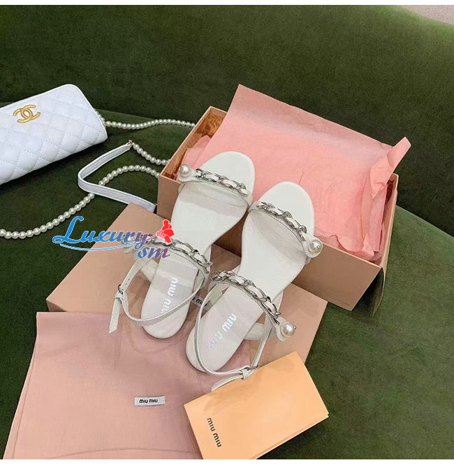 MIUMIU-5X549D 미우미우 화이트 페이턴트 가죽 펄 장식 샌들