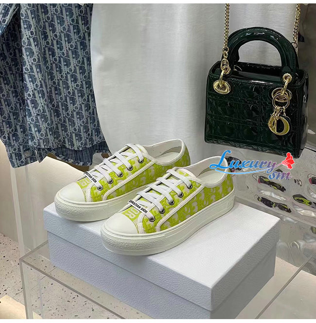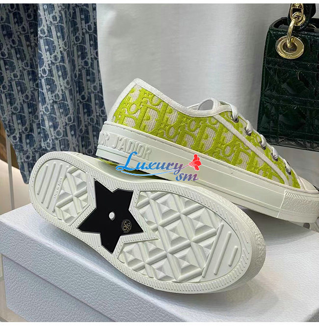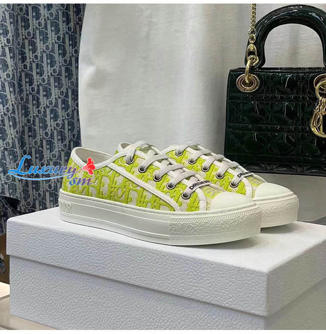 DIOR-KCK211 디올 라임 Dior Oblique 자수 코튼 WALK N DIOR 스니커즈 여성용