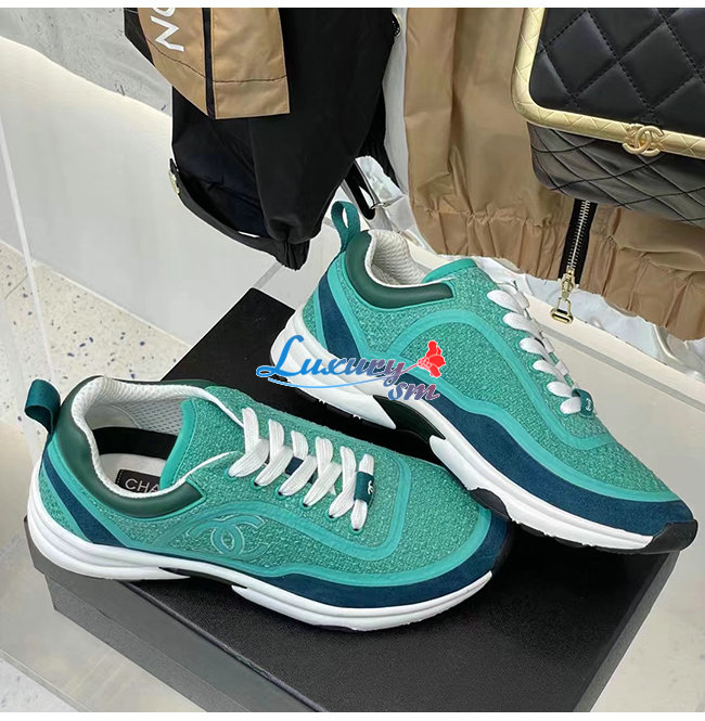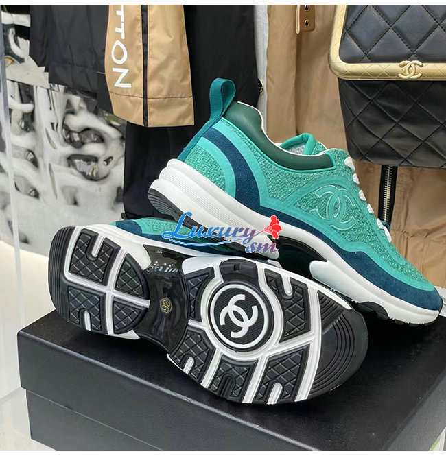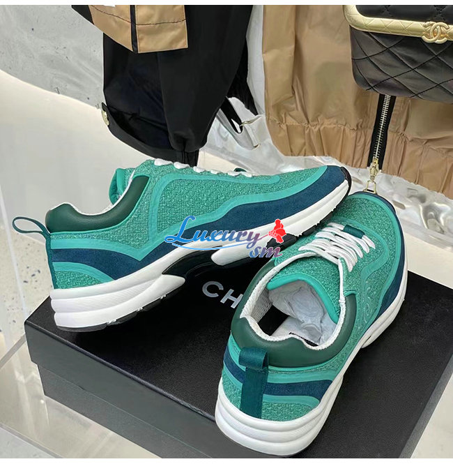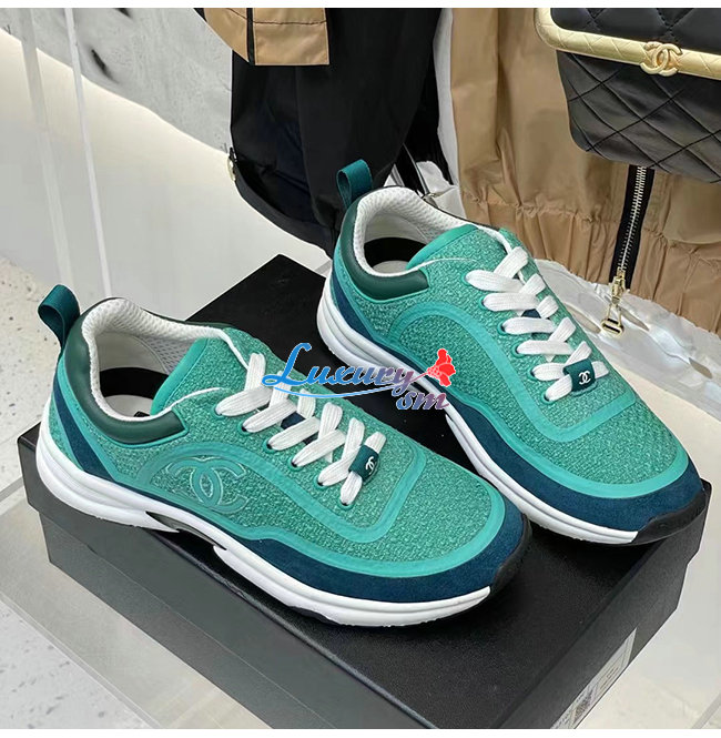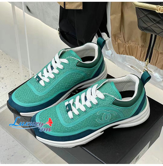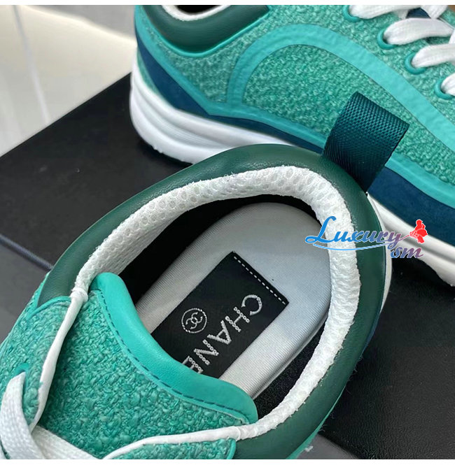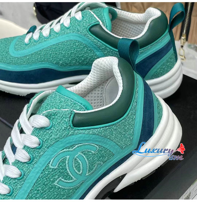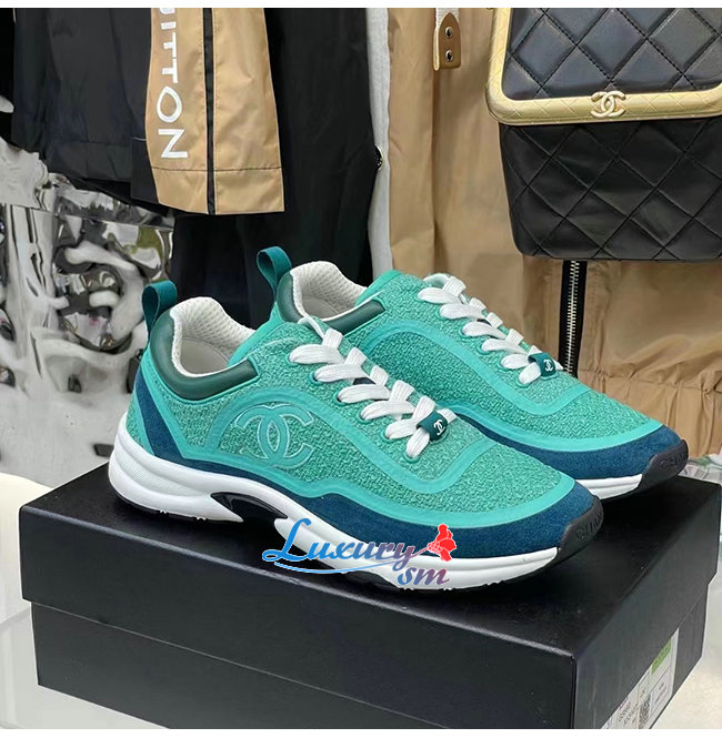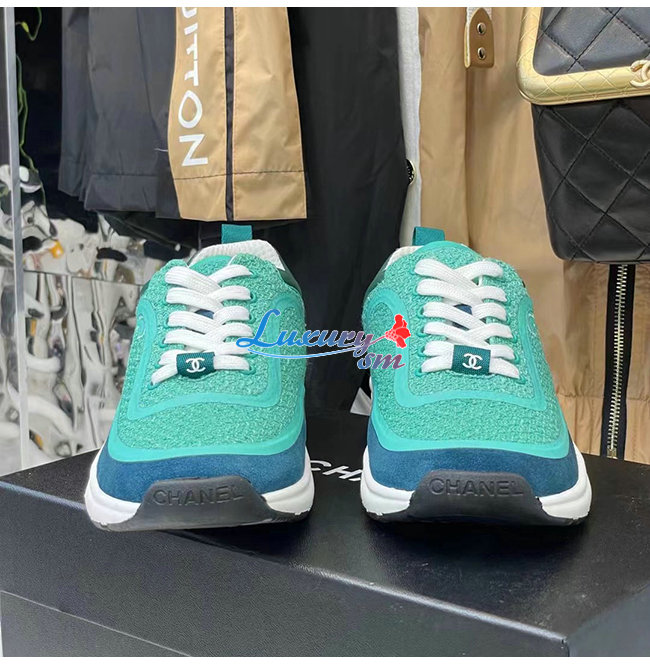 CHANEL-G34360 샤넬 그린/블루 트위드 스니커즈 여성용