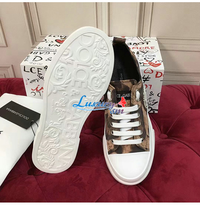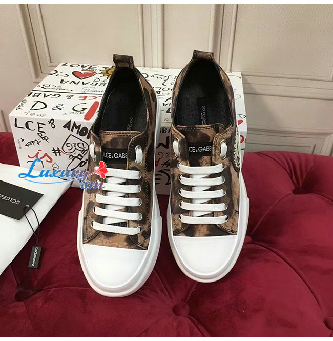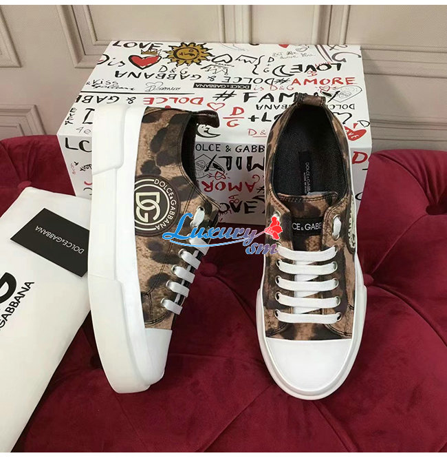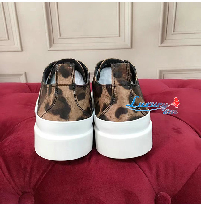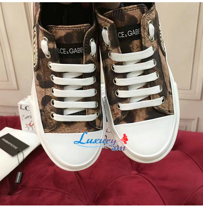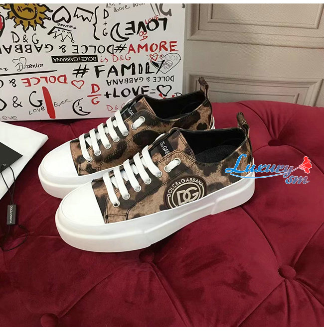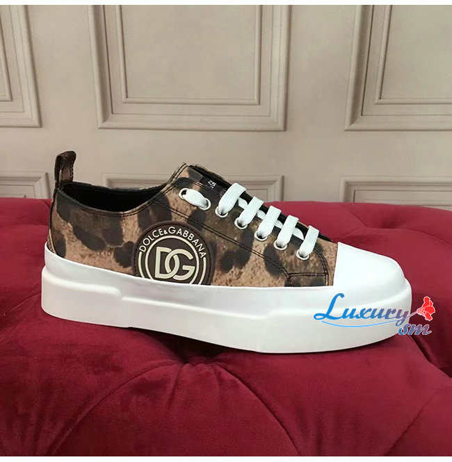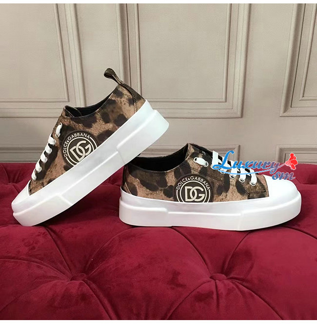 Dolce and Gabbana-돌체 앤 가바나 레오파드 프린트 코튼 드릴 포르토피노 라이트 스니커즈 남여공용