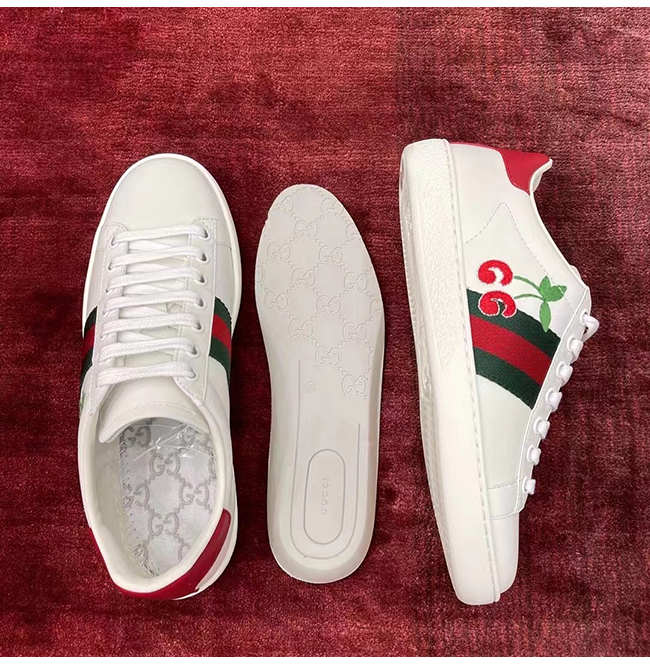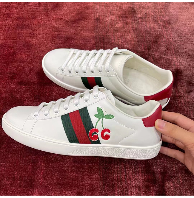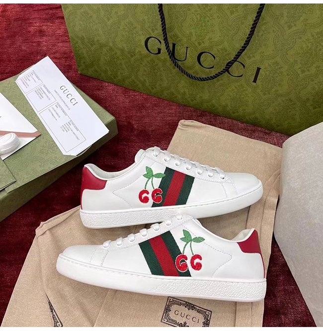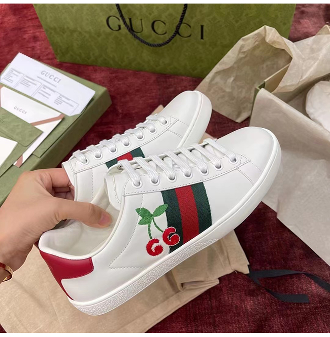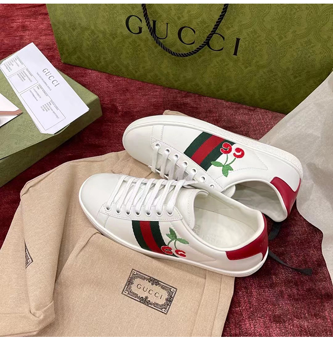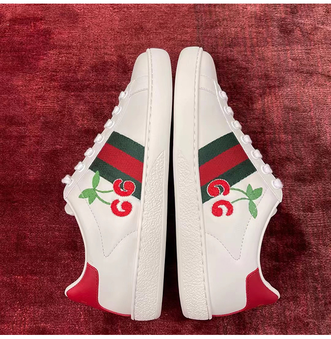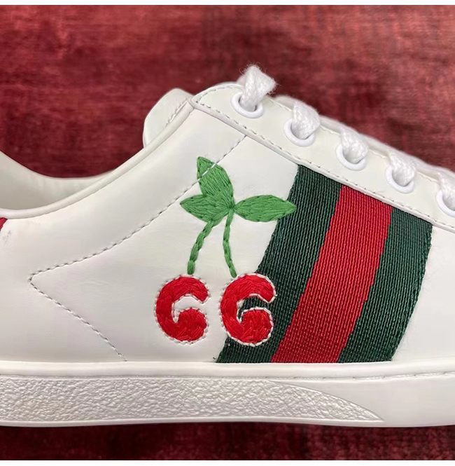 GUCCI-653135 9065 구찌 에이스 화이트 가죽 체리 디테일 스니커즈 여성용