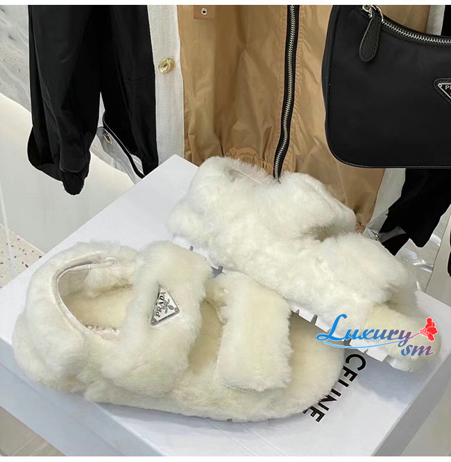 PRADA-1X737M 프라다 화이트 시어링 샌들
