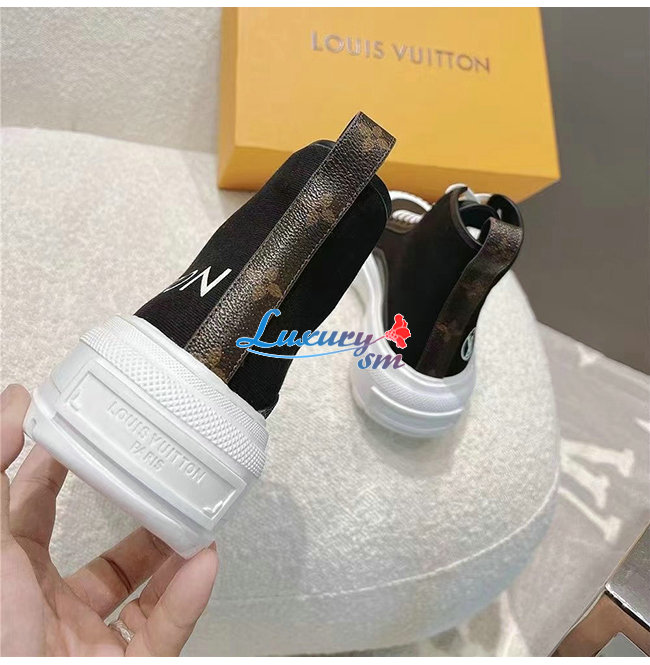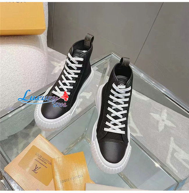 바이컬러 LV 스쿼드 스니커 부츠, 송아지 가죽 트리밍을