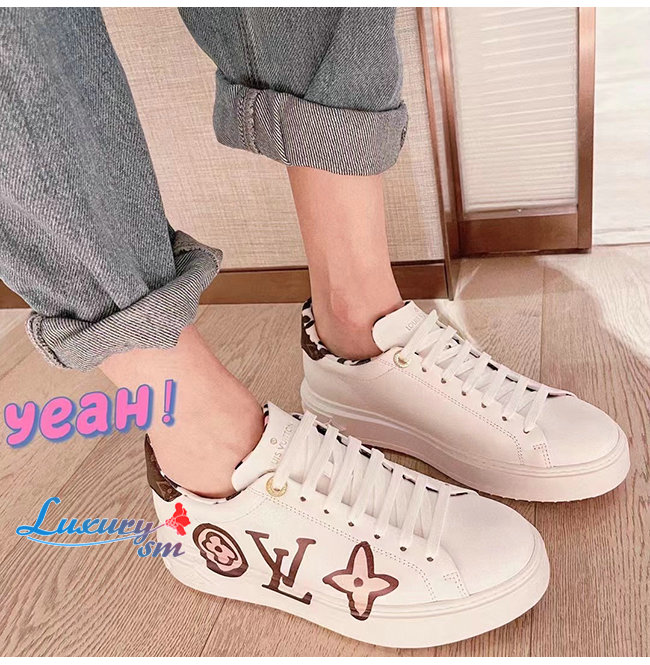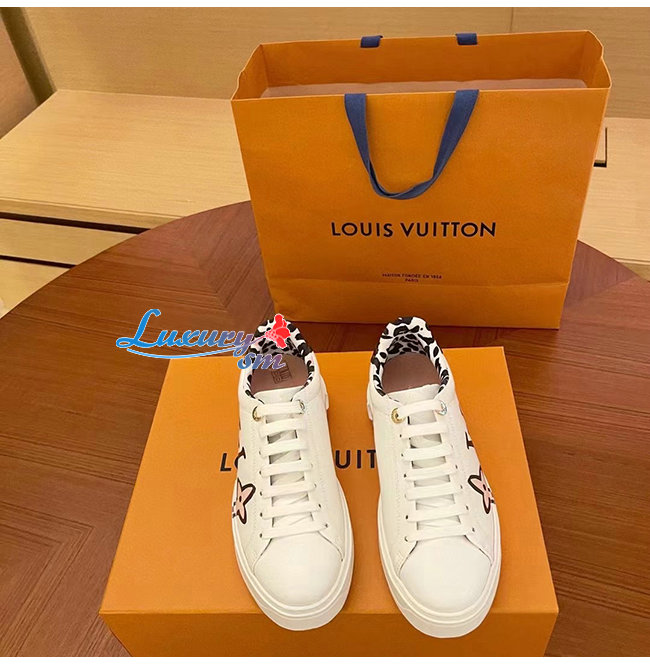 LOUIS VUITTON-1A93XF 루이비통 화이트 모노그램 플라워 프린트 송아지 가죽 타임 아웃 스니커즈