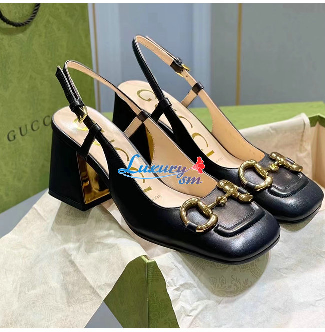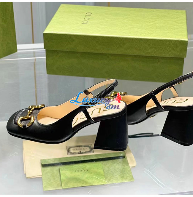 GUCCI-643892 1000 구찌 블랙 가죽 홀스빗 미드힐 슬링백