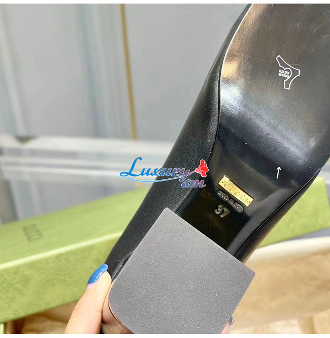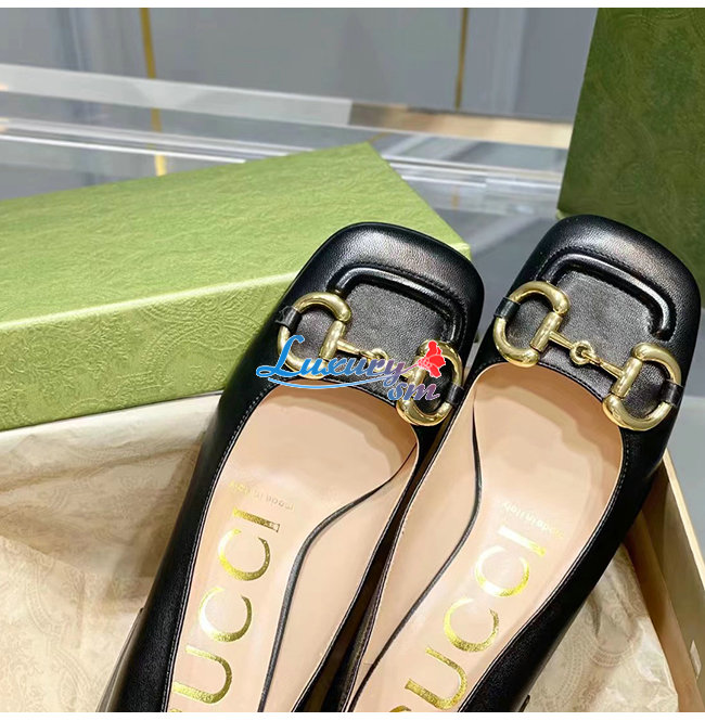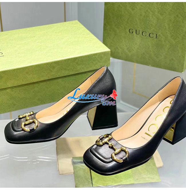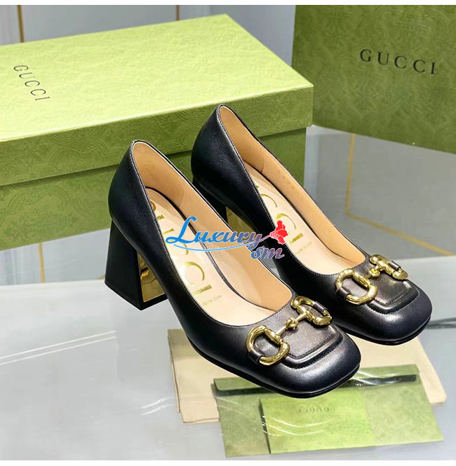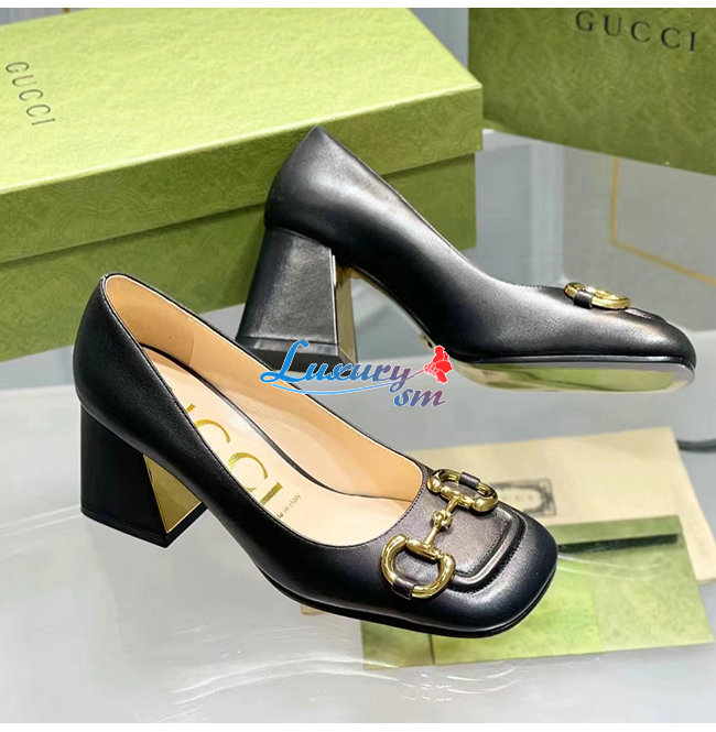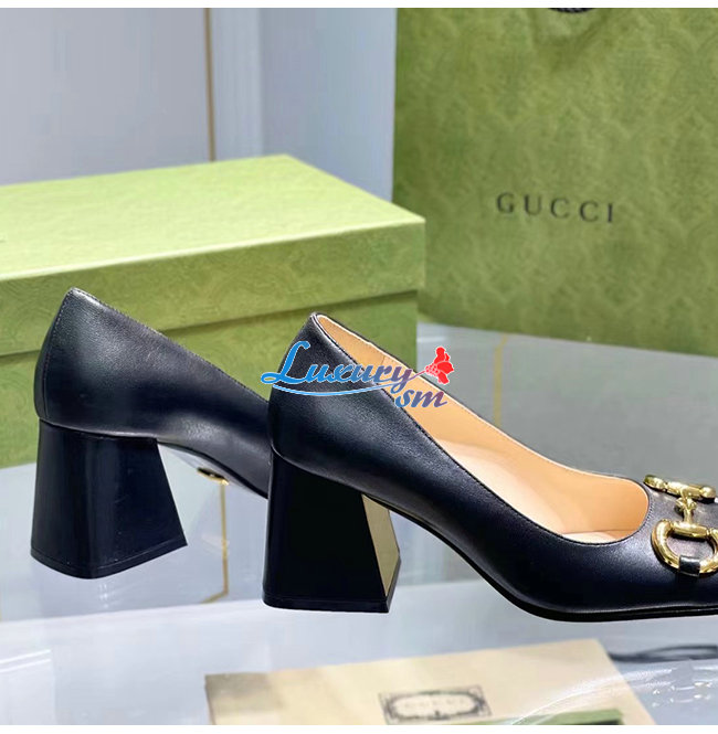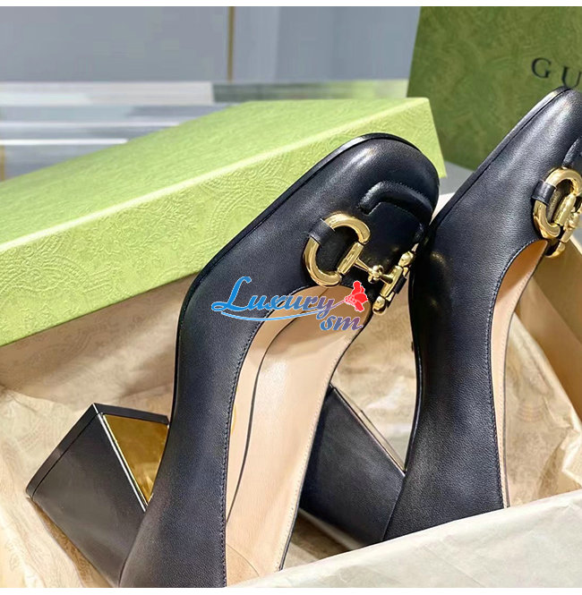 GUCCI-643886 1000 구찌 블랙 가죽 홀스빗 미드힐 펌프스