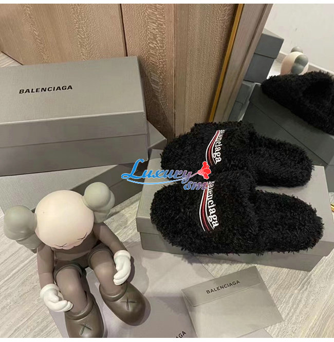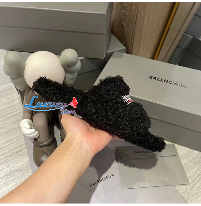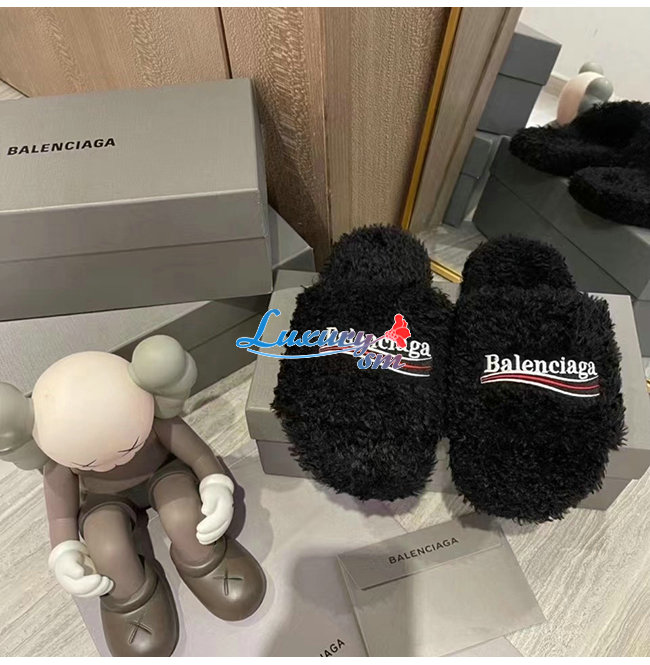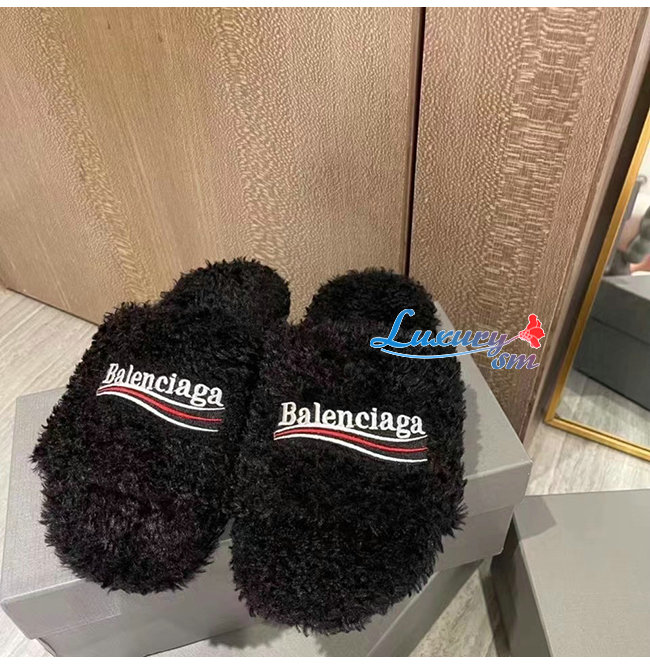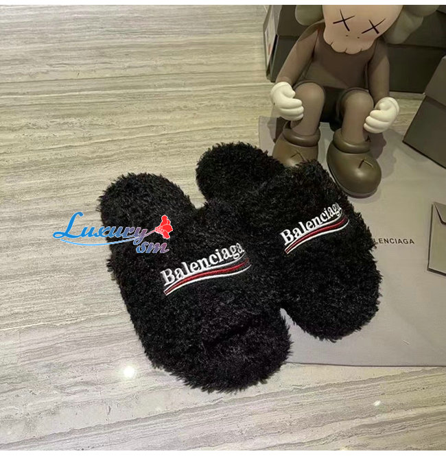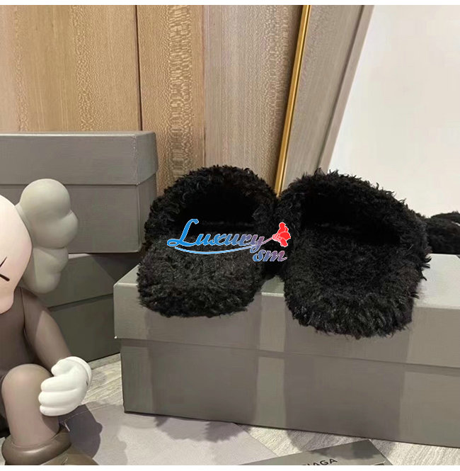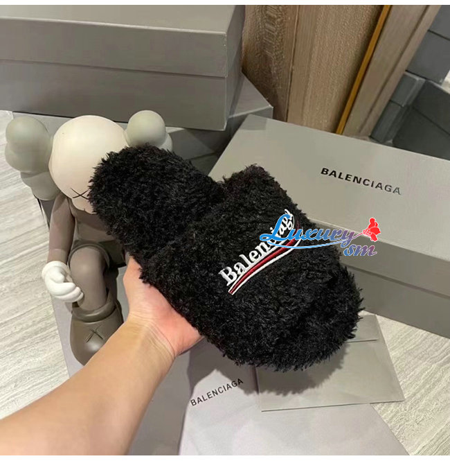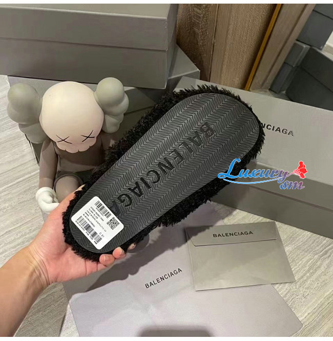 BALENCIAGA-654747 발렌시아가 블랙 퍼리 슬라이드 샌들 여성용