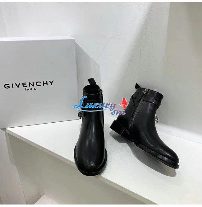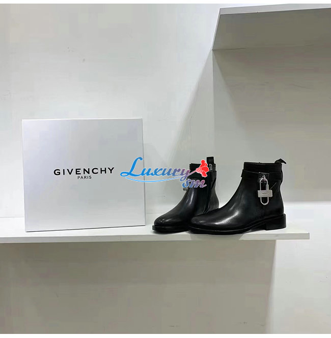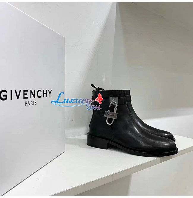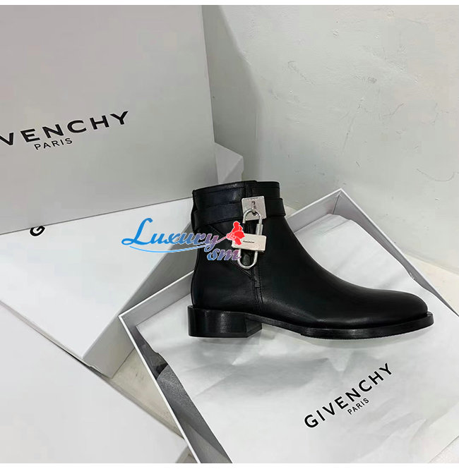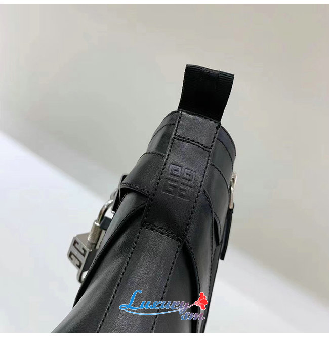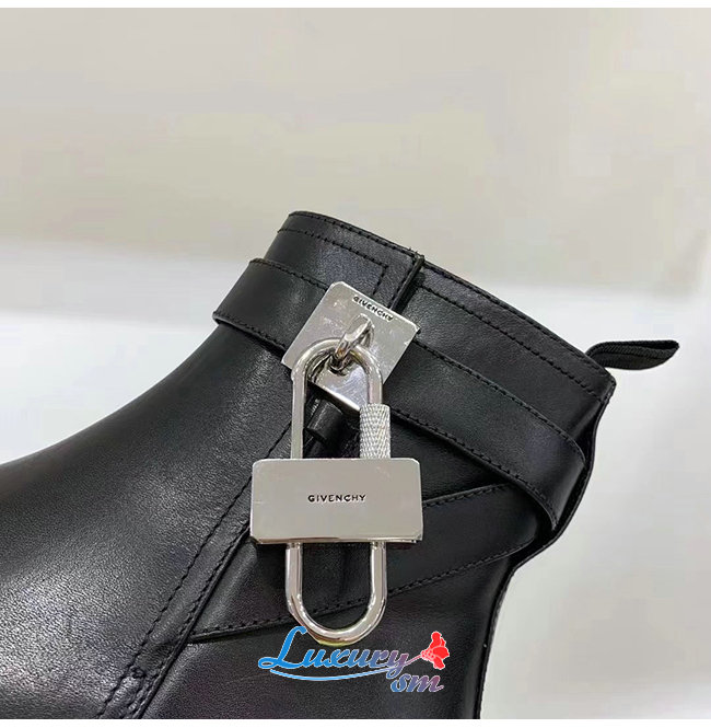 GIVENCHY-BE602PE 지방시 블랙 송아지 가죽 자물쇠 장식 부츠 여성용