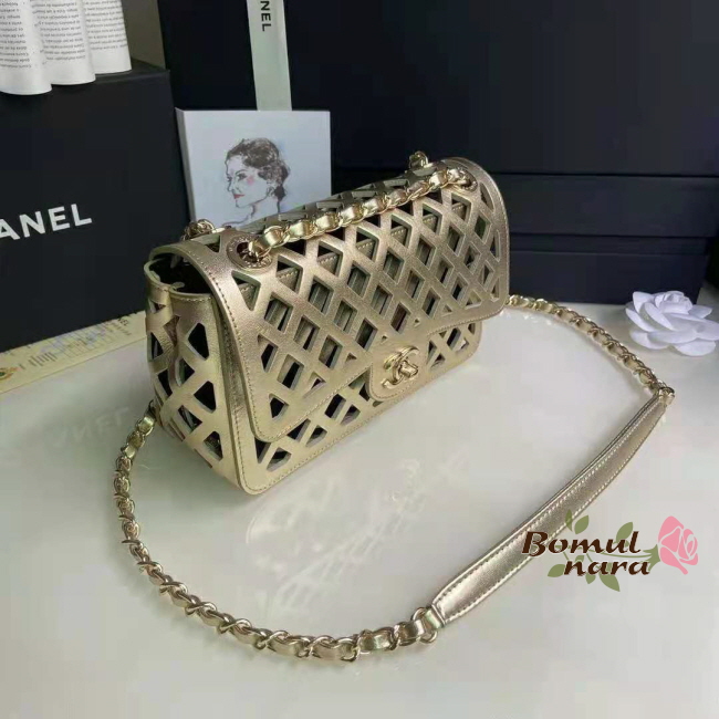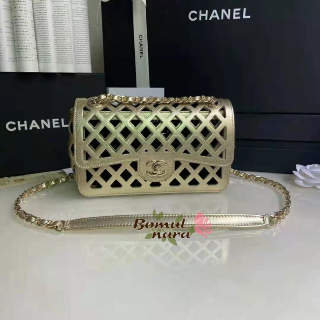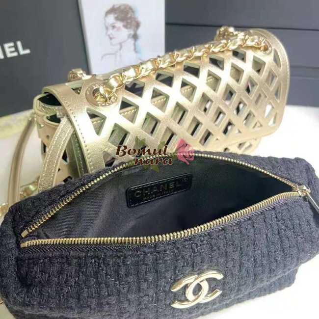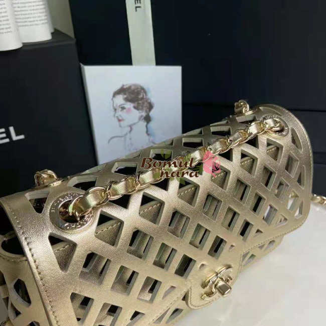 [스페셜오더]CHANEL-AS2370 샤넬 메탈릭 퍼포레이티드 트위드 골드 체인 플랩 백