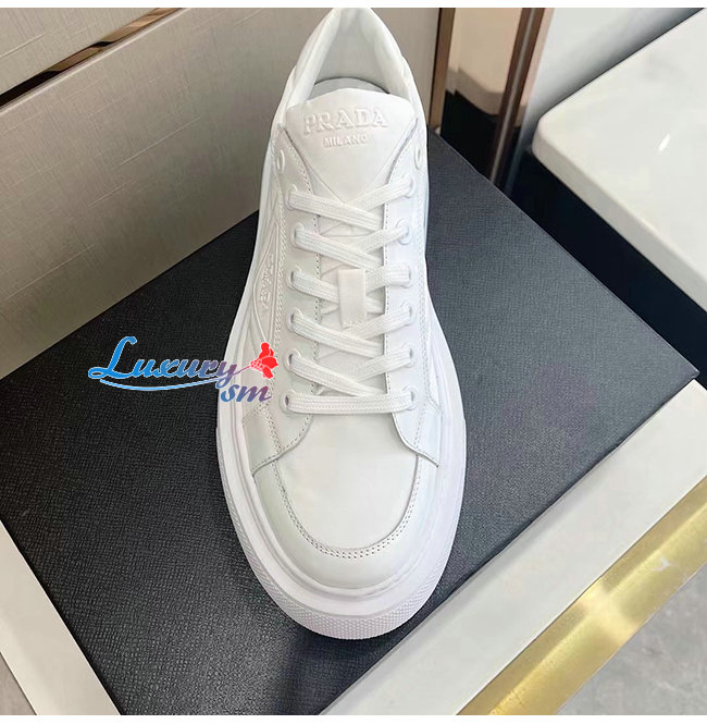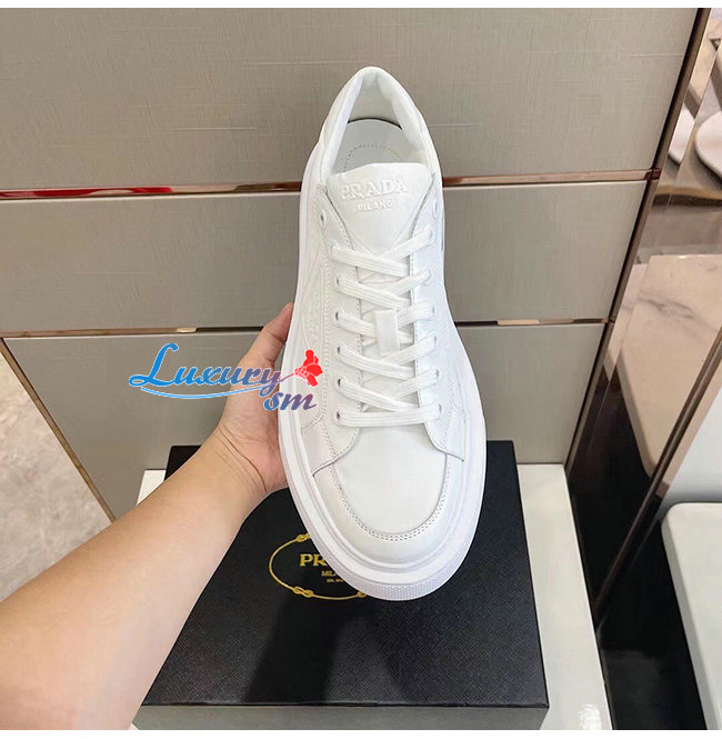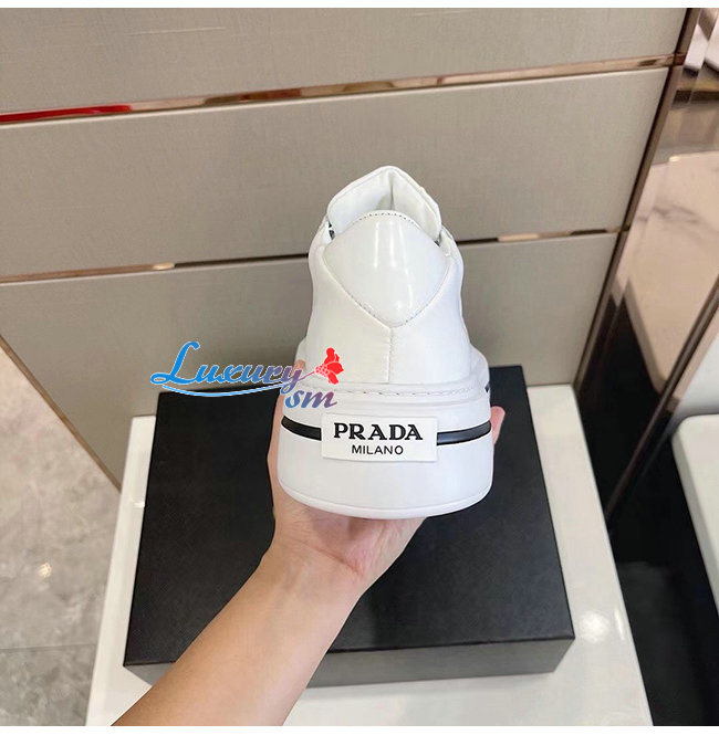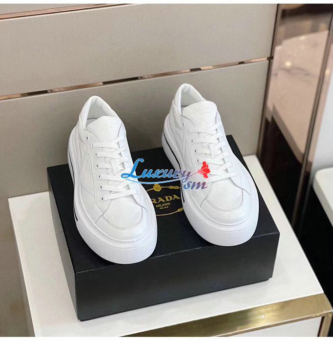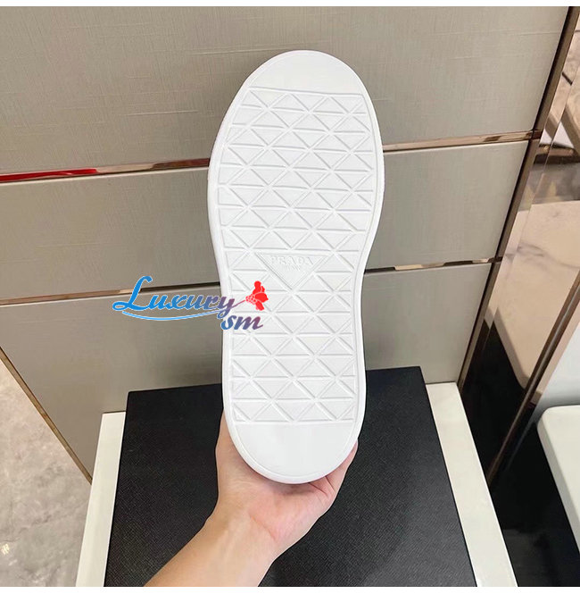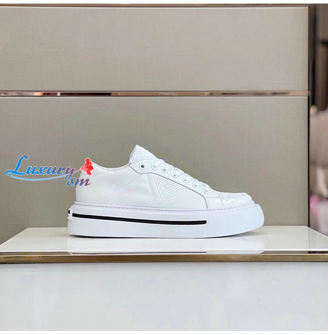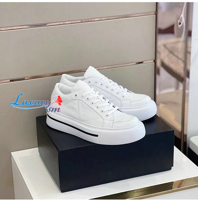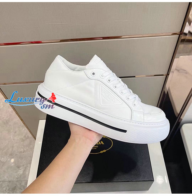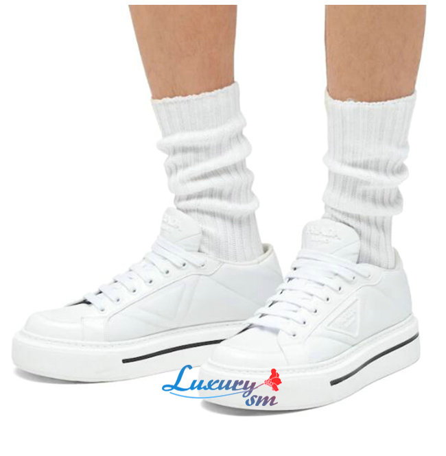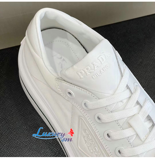 PRADA-2EG376 프라다 화이트 매크로 리나일론 브러시드 가죽 스니커즈