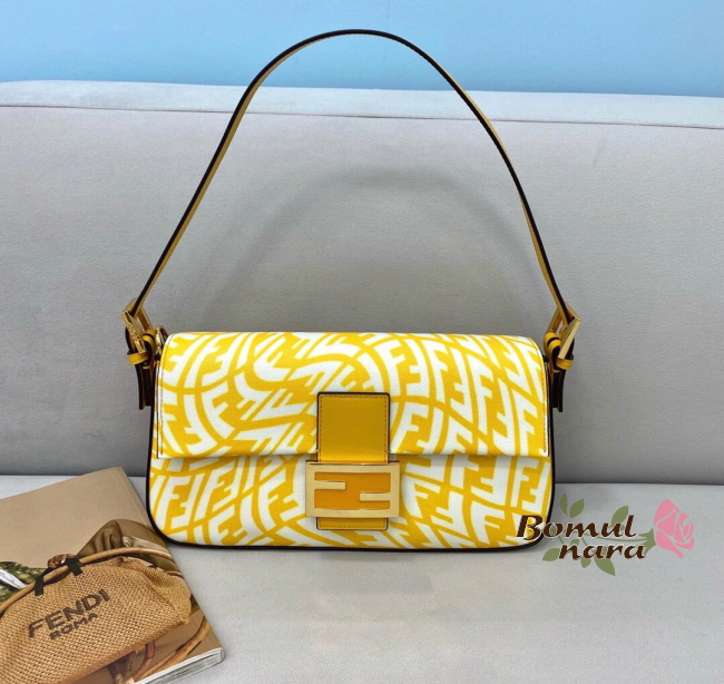 [스페셜오더]FENDI-8BR792 펜디 옐로우 글레이즈드 캔버스 미디엄 바게트 1997 백