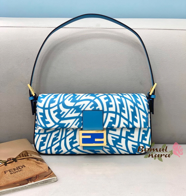 [스페셜오더]FENDI-8BR792 펜디 블루 글레이즈드 캔버스 미디엄 바게트 1997 백