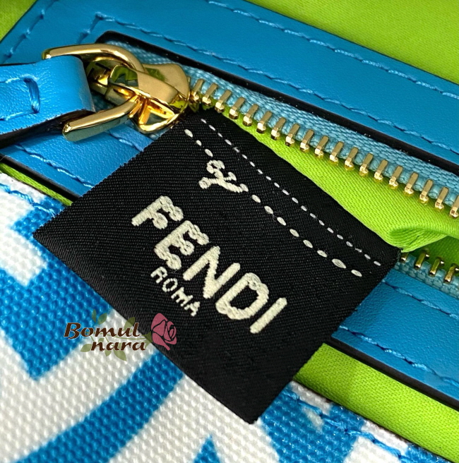 FF 버티고 그래픽 프린트 글레이즈드 캔버스 / 블루 가죽 트리밍