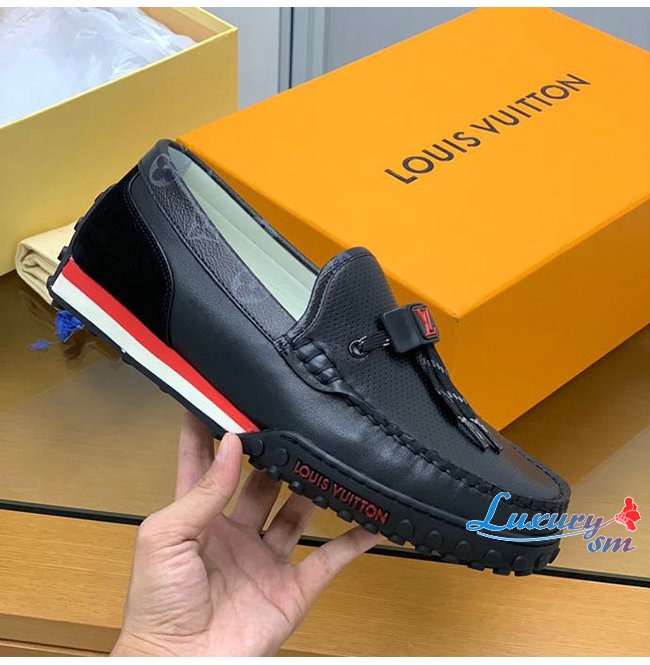 LOUIS VUITTON-1A8Z39 루이비통 블랙 송아지 가죽 LV 레이서 모카신