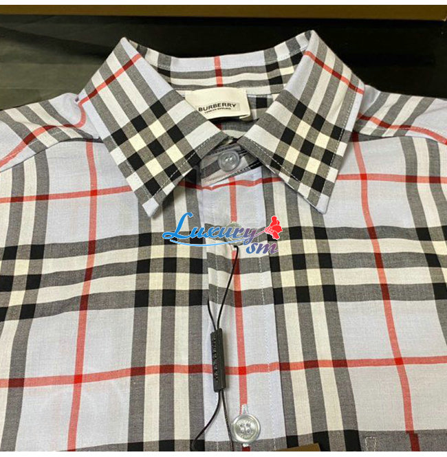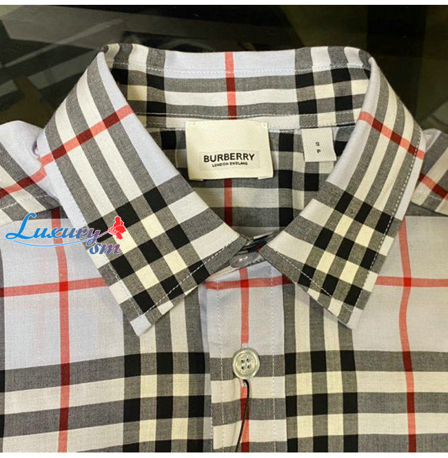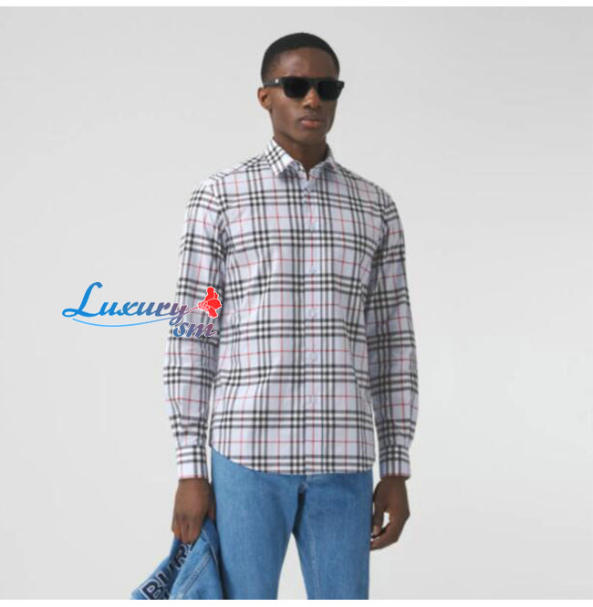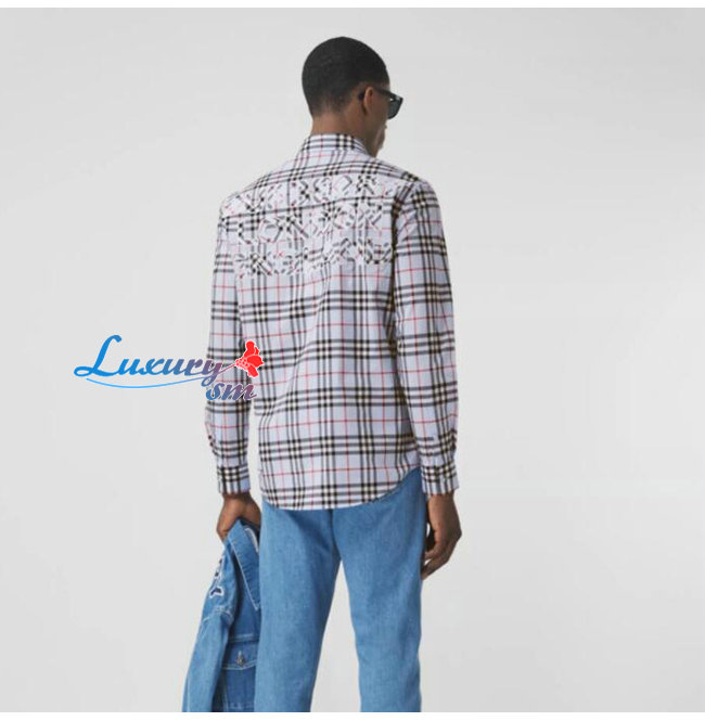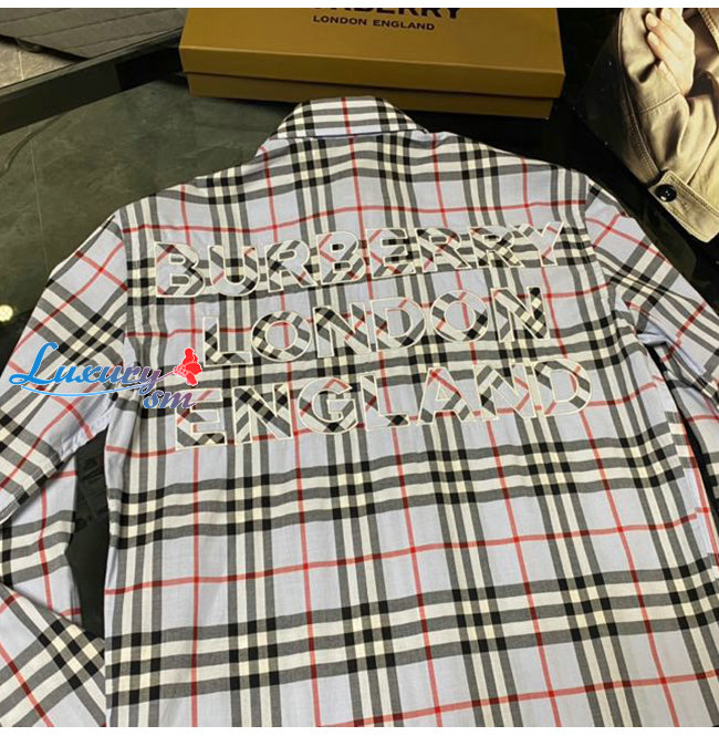 BURBERRY-80385221 버버리 페일 블루 로고 아플리케 빈티지 체크 셔츠