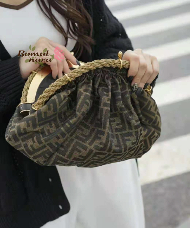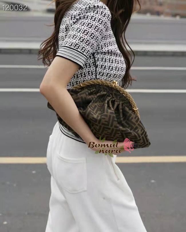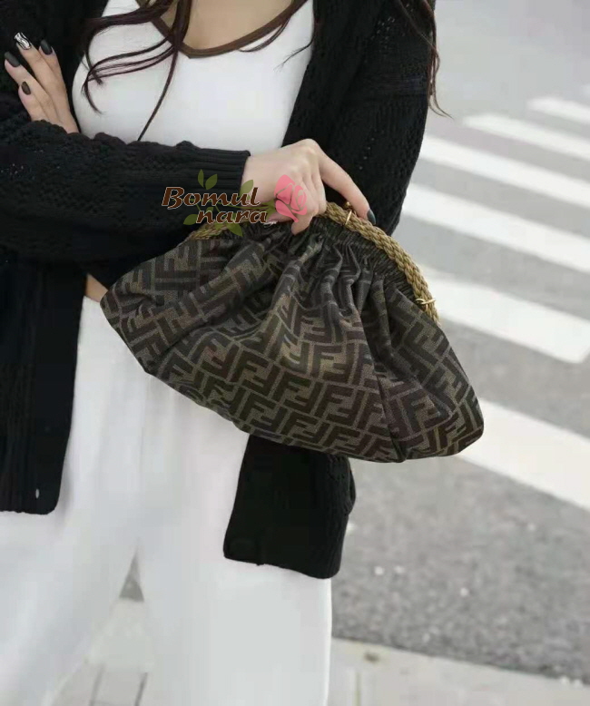 [스페셜오더]FENDI-8BP121 펜디 브라운 FF 패브릭 SHELL 포쉐트 파우치 백