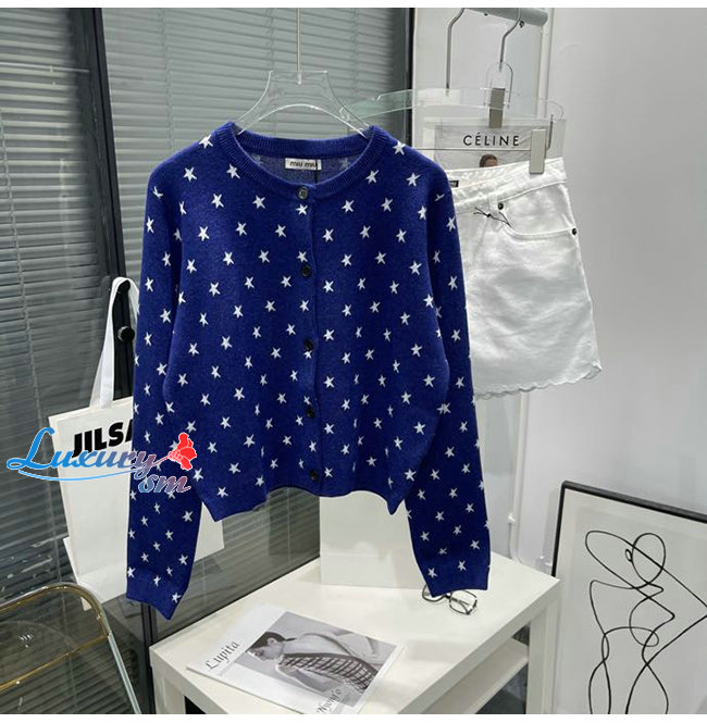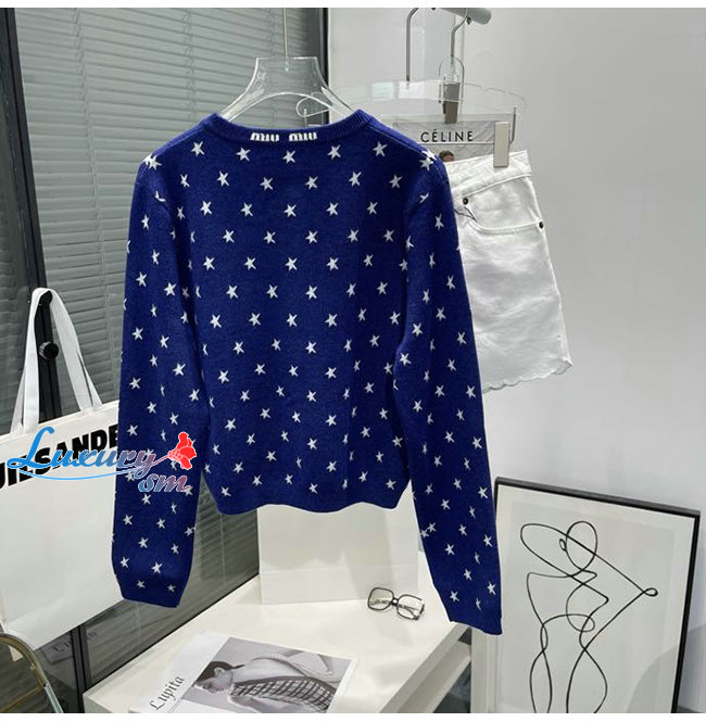 MIUMIU-MMF516 미우미우 네이비 인타르시아 울 카디건