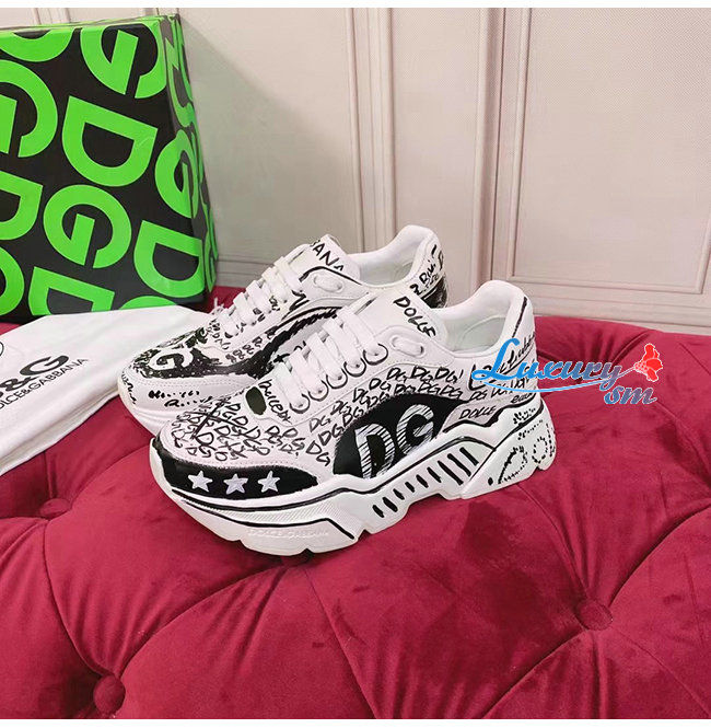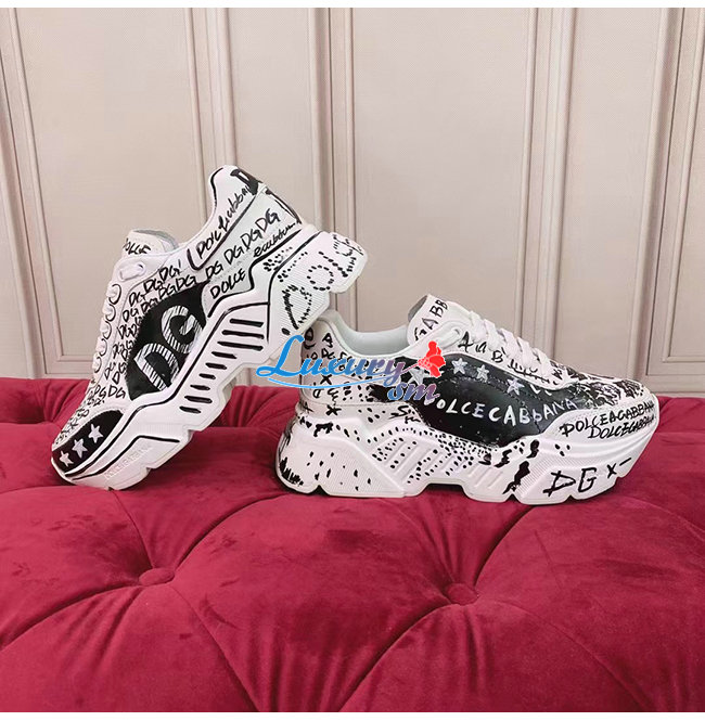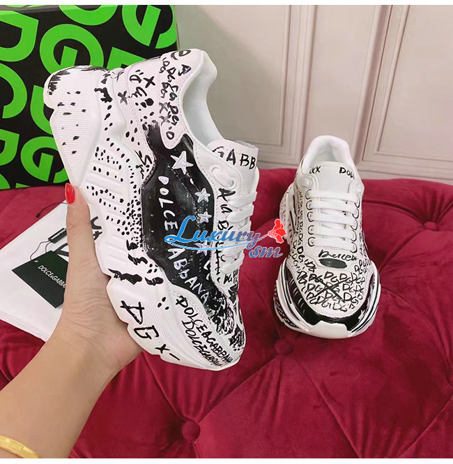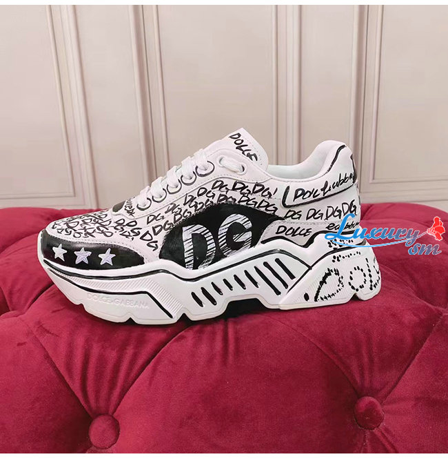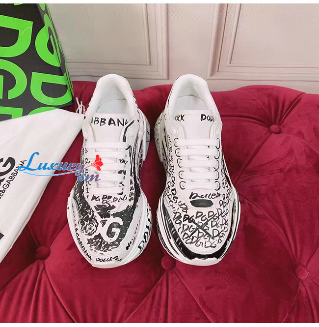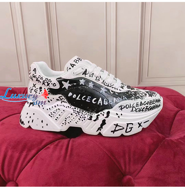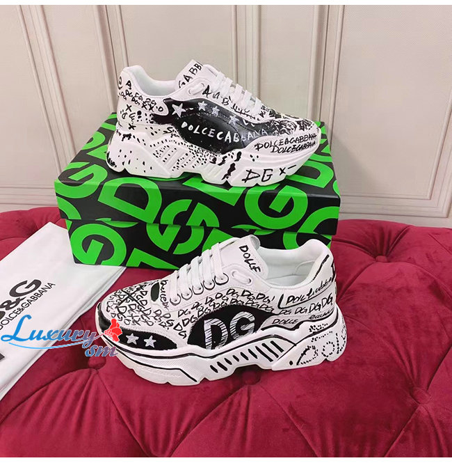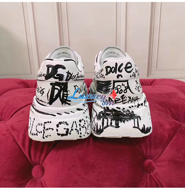 Dolce and Gabbana-돌체 앤 가바나 화이트/블랙 카프스킨 핸드페인팅 그래피티 데이마스터 스니커즈 남여공용