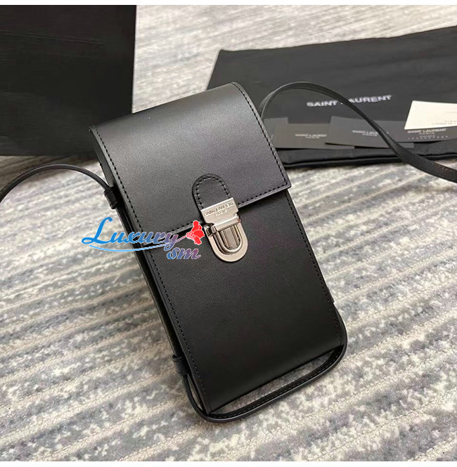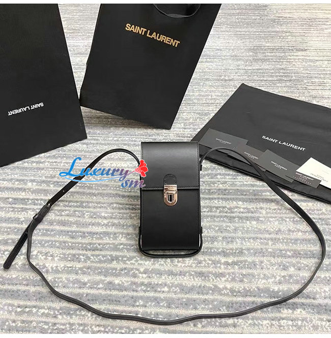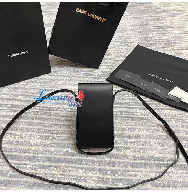 [스페셜오더]SAINT LAURENT-667718 생 로랑 블랙 카프스킨 TUC 스트랩 폰 파우치