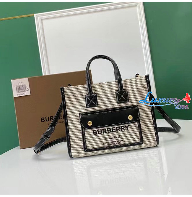 [스페셜오더]BURBERRY-80441421 버버리 블랙 미니 투톤 캔버스 레더 프레야 백