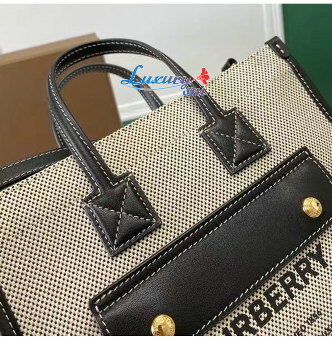 [스페셜오더]BURBERRY-80441431 버버리 탠 미니 투톤 캔버스 레더 프레야 백
