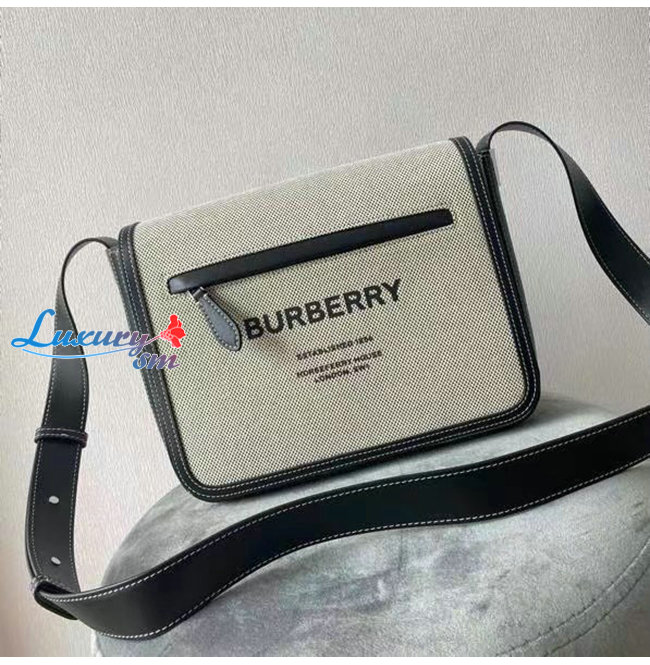 [스페셜오더]BURBERRY-80420361 버버리 블랙 스몰 호스페리 프린트 코튼 캔버스 메신저 백