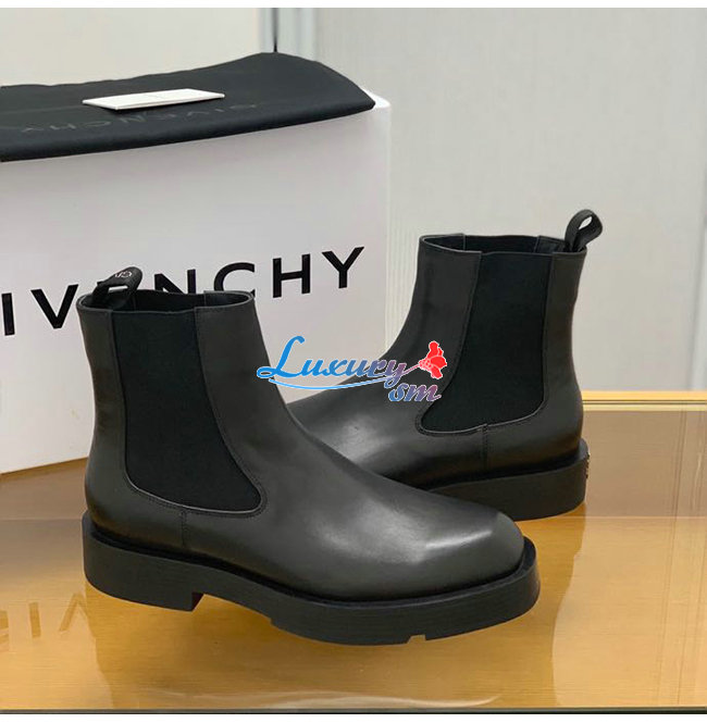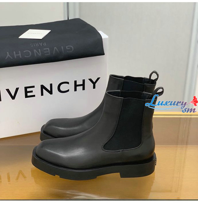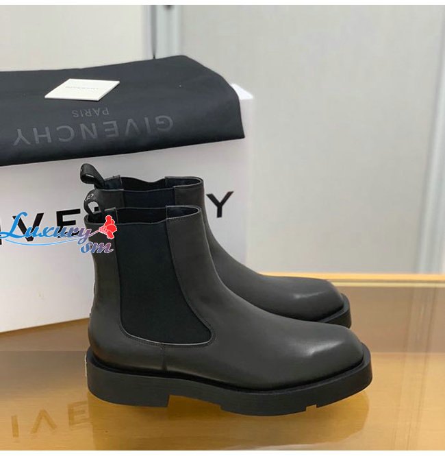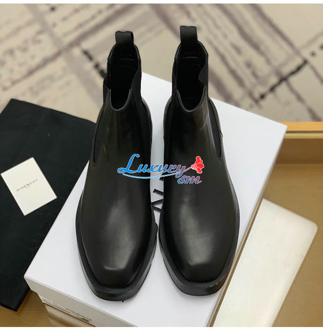 GIVENCHY-BH6033H 지방시 블랙 스무스 송아지 가죽 스퀘어드 첼시 부츠 남성용
