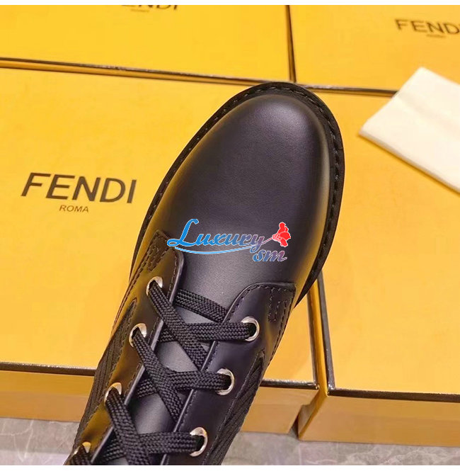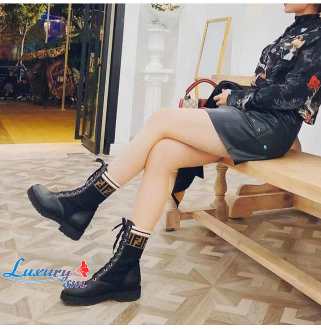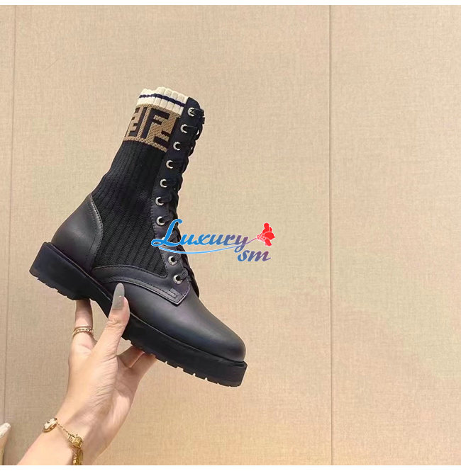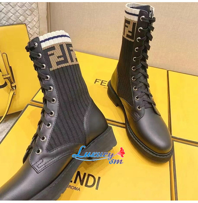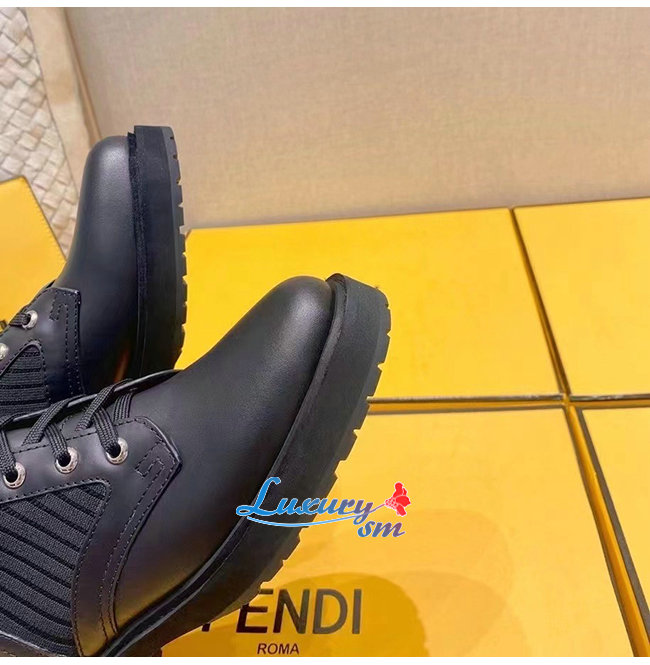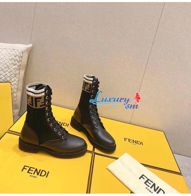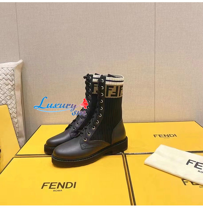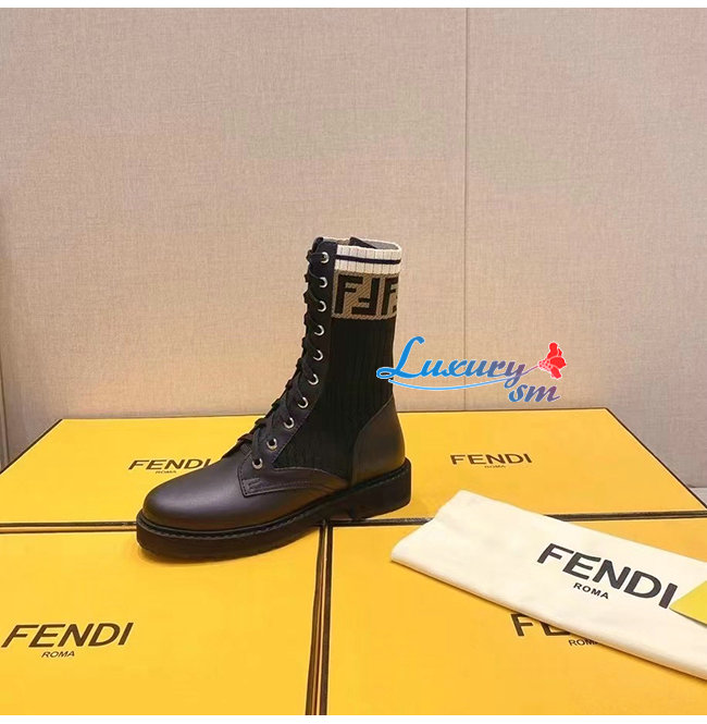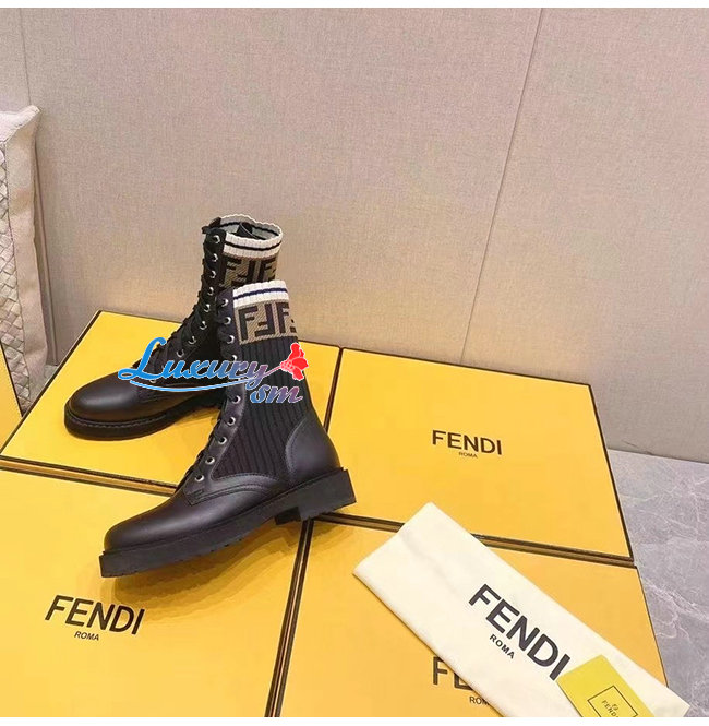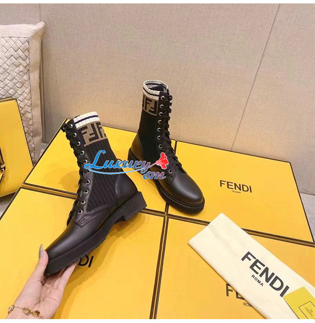 FENDI-8T6780 펜디 블랙 송아지 가죽 패브릭 로코코 바이커 부츠 여성용