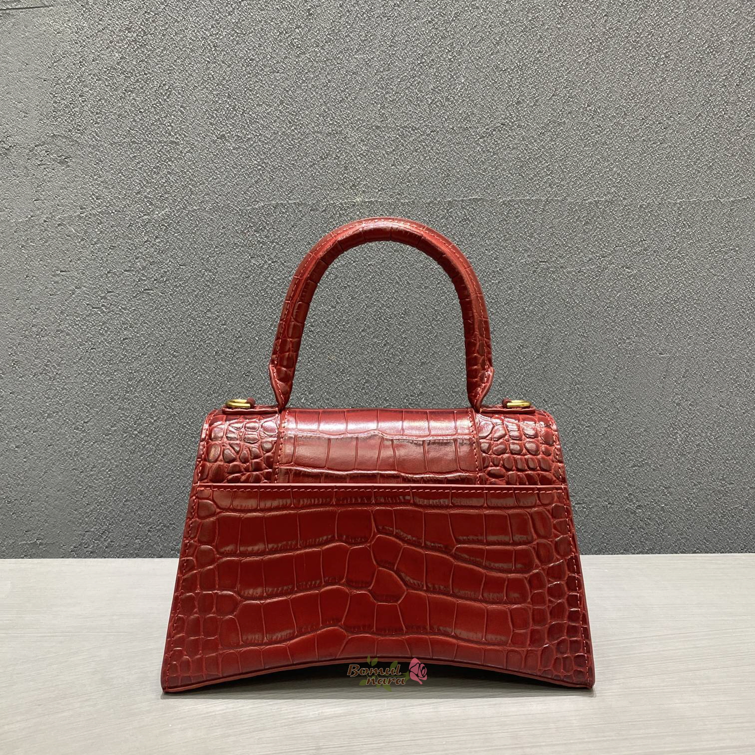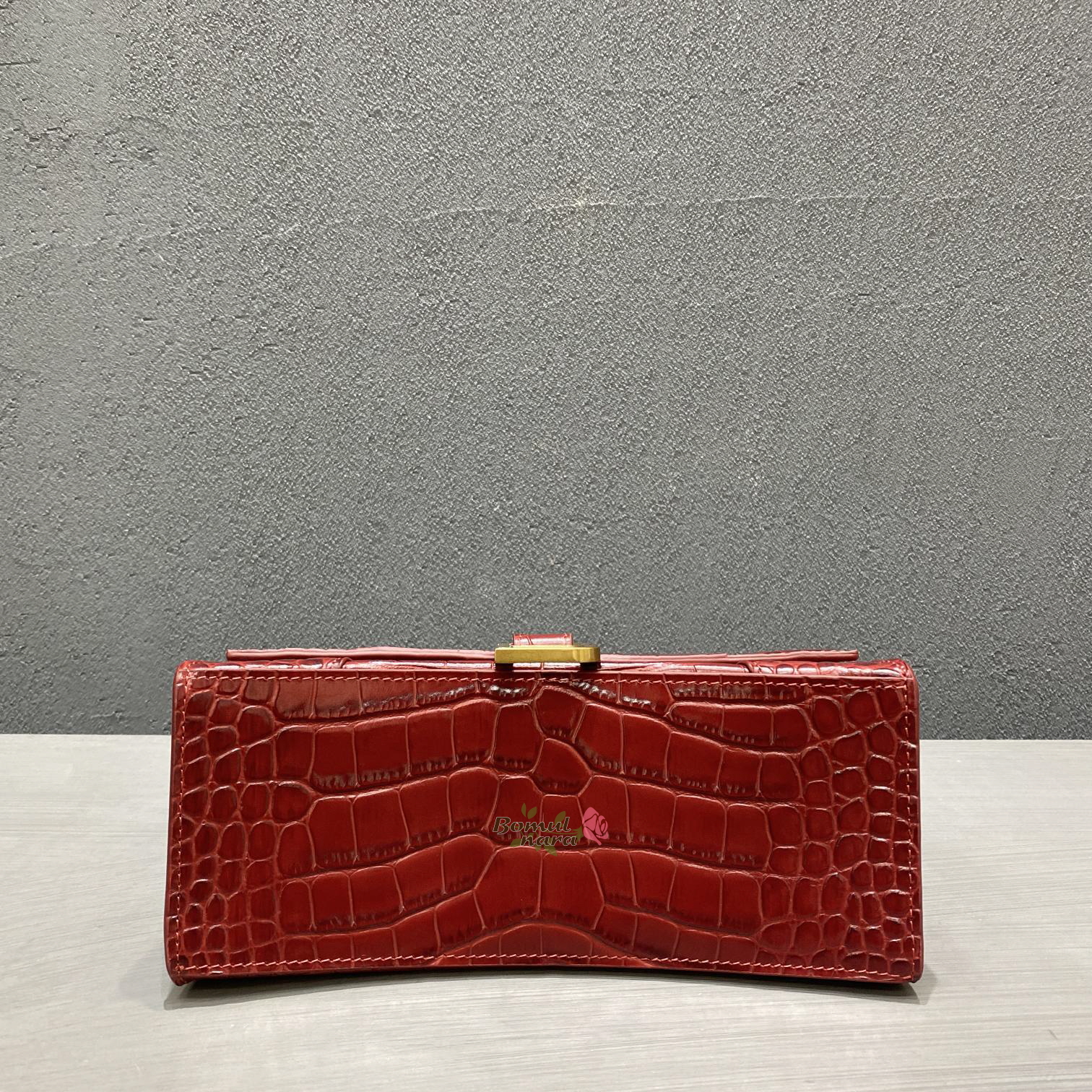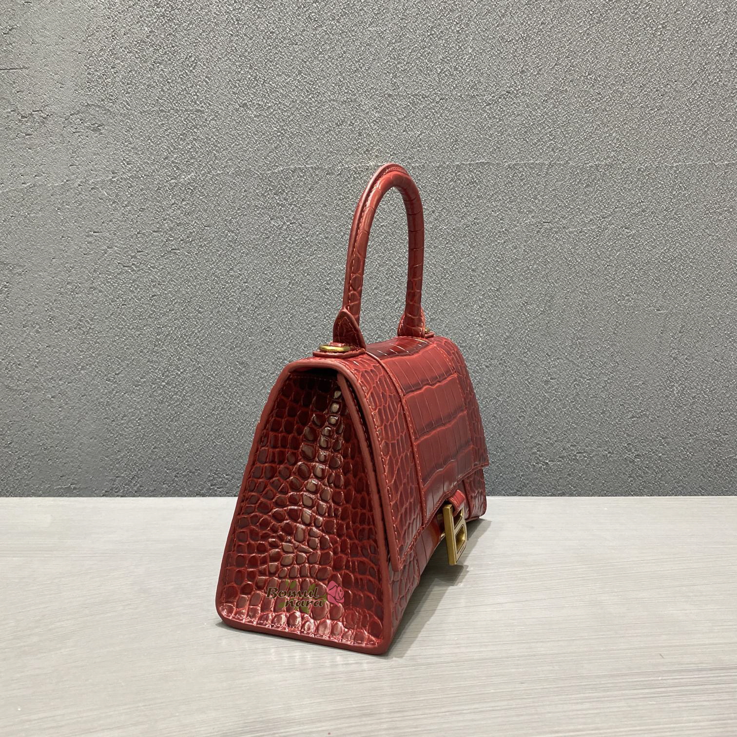 [스페셜오더]BALENCIAGA-593546 발렌시아가 다크 레드 크로커다일 아워글래스 스몰 탑 핸들백