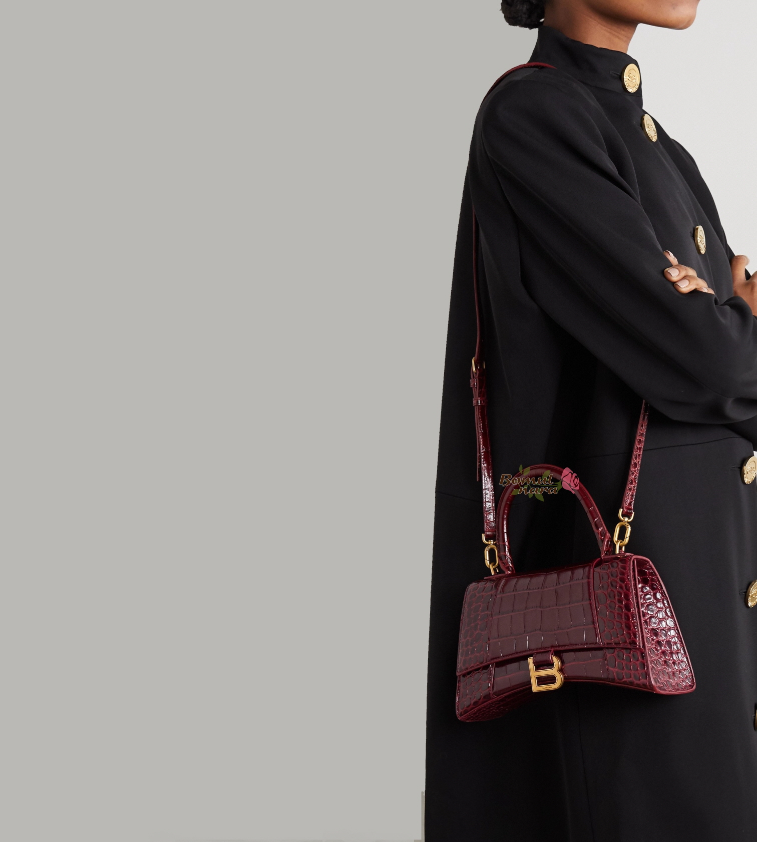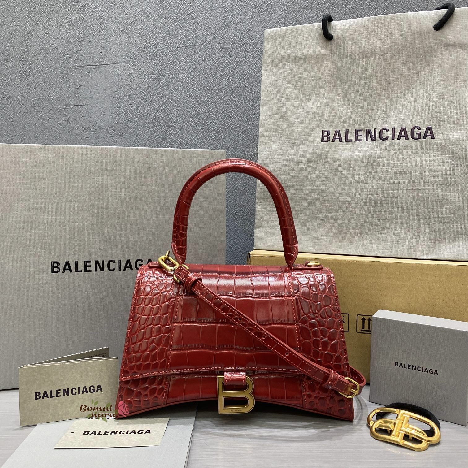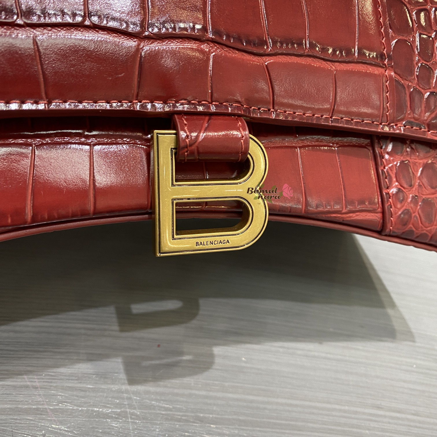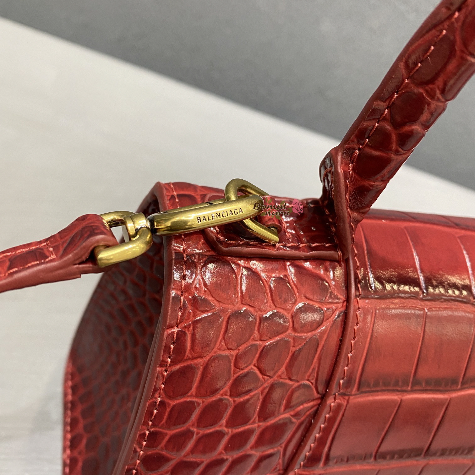[스페셜오더]BALENCIAGA-593546 발렌시아가 다크 레드 크로커다일 아워글래스 스몰 탑 핸들백