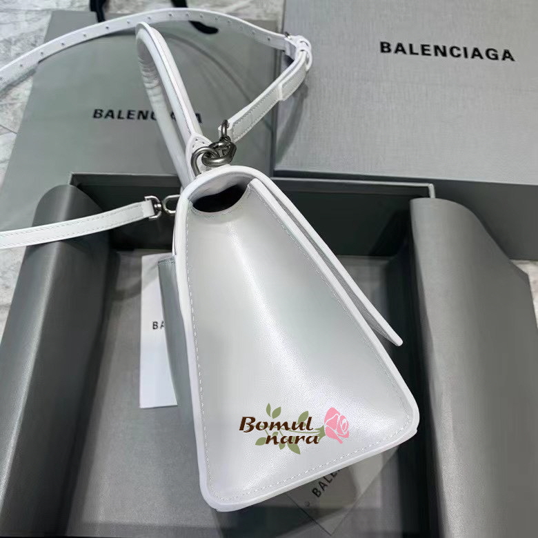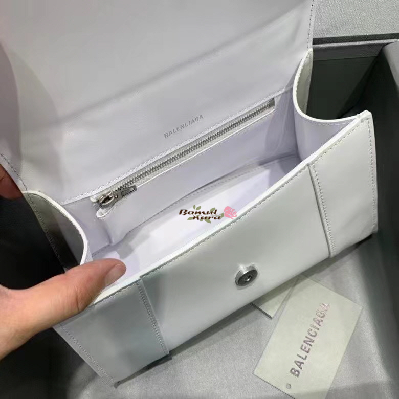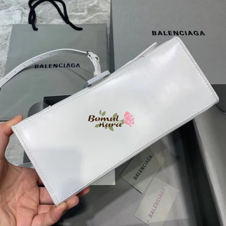 [스페셜오더]BALENCIAGA-593546 발렌시아가 화이트 샤이니 아워글래스 스몰 탑 핸들백