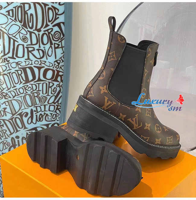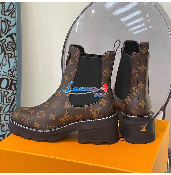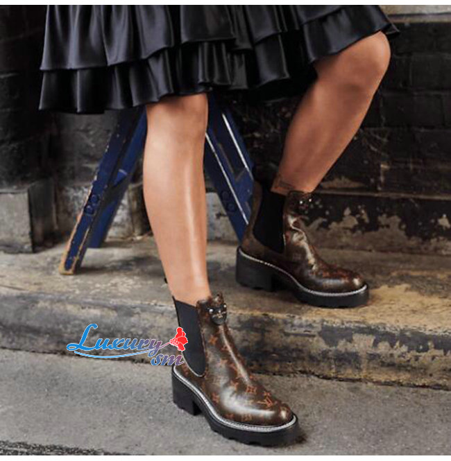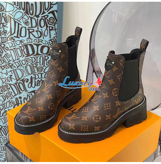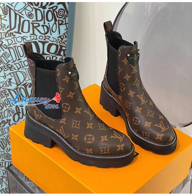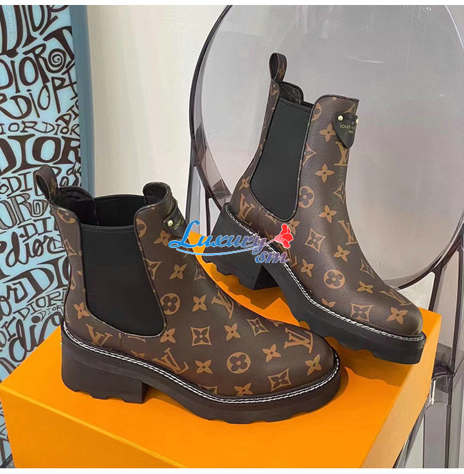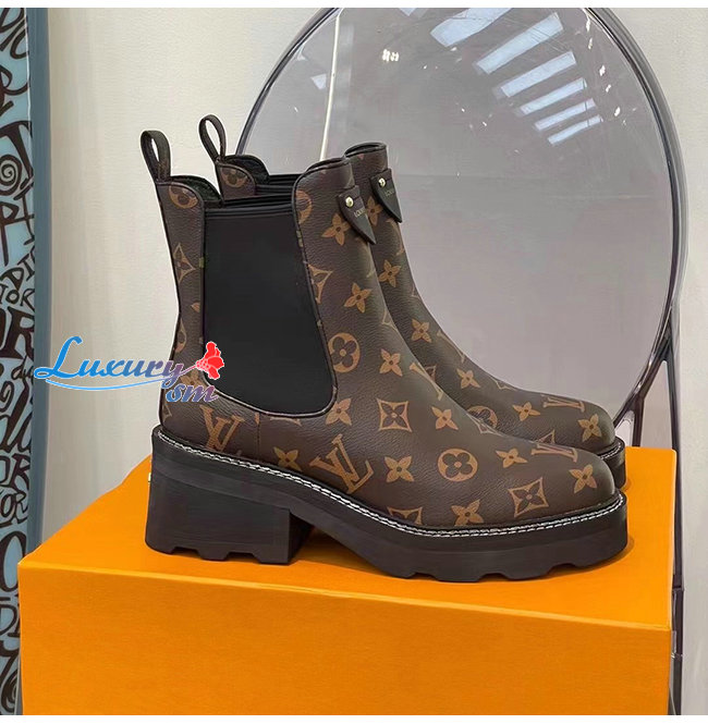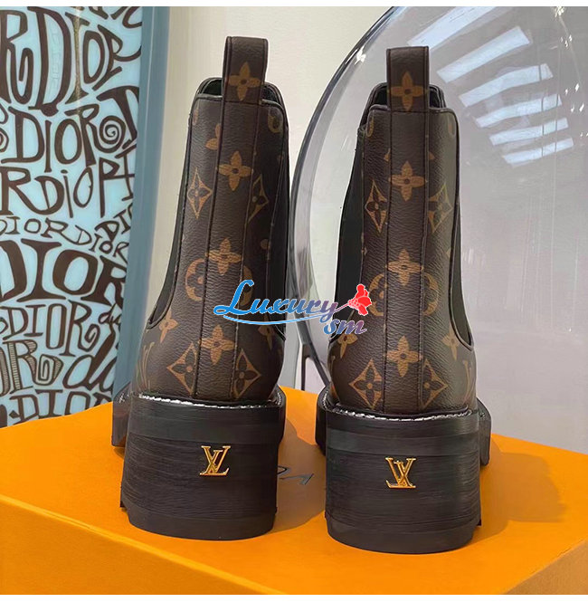 LOUIS VUITTON-1A8QCO 루이비통 페이턴트 모노그램 LV 보부르 앵클 부츠