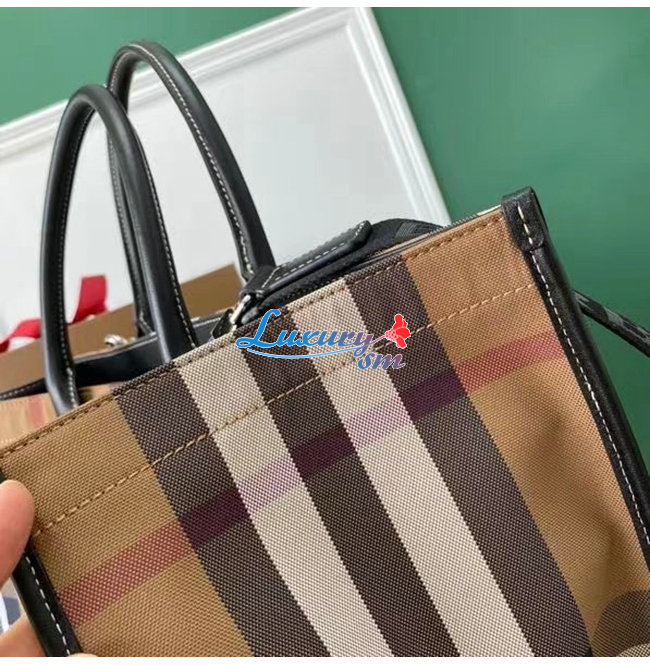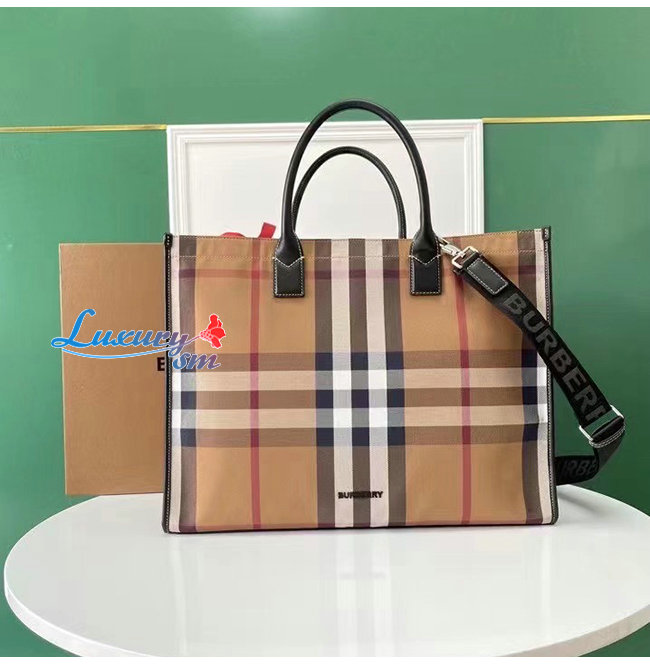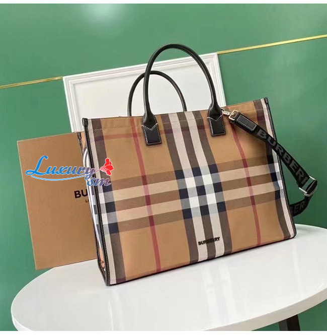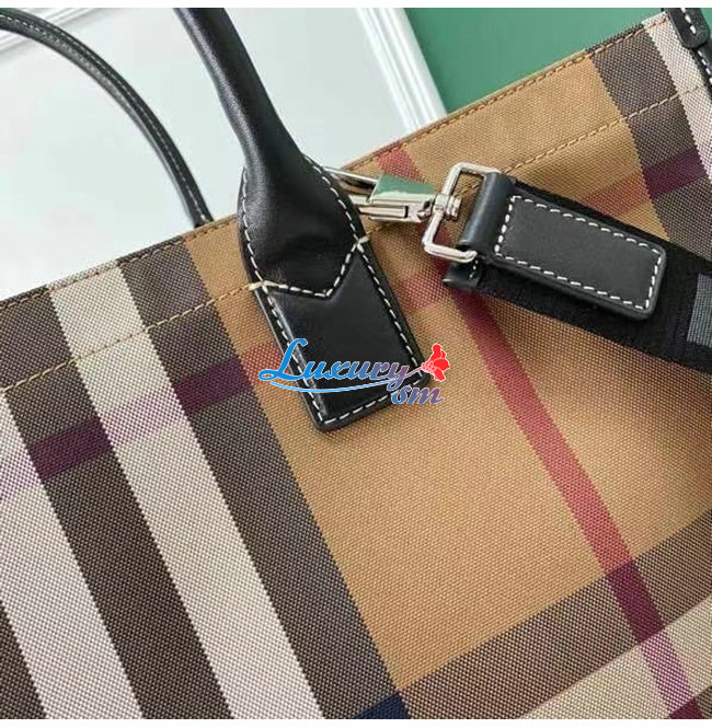 [스페셜오더]BURBERRY-80418941 버버리 브라운 체크 코튼 캔버스 토트