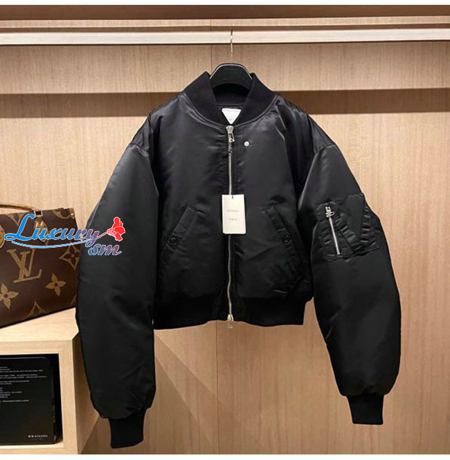 ▶패딩 처리한 나일론 새틴 소재의 크롭 재킷