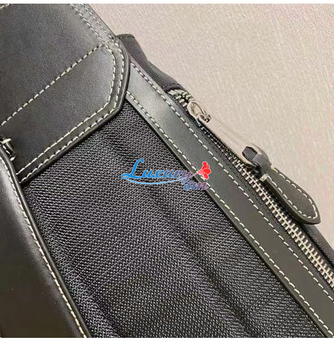 스티치 디테일의 가죽 패널이 돋보이는 나일론