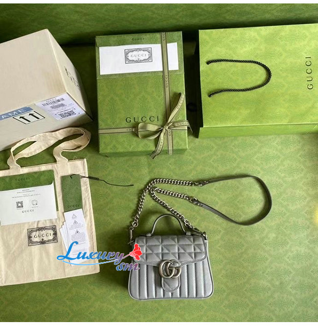 [스페셜오더]GUCCI-583571 1711 구찌 GG 마몽 그레이 가죽 미니 탑 핸들백