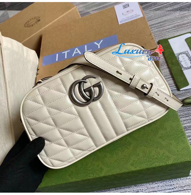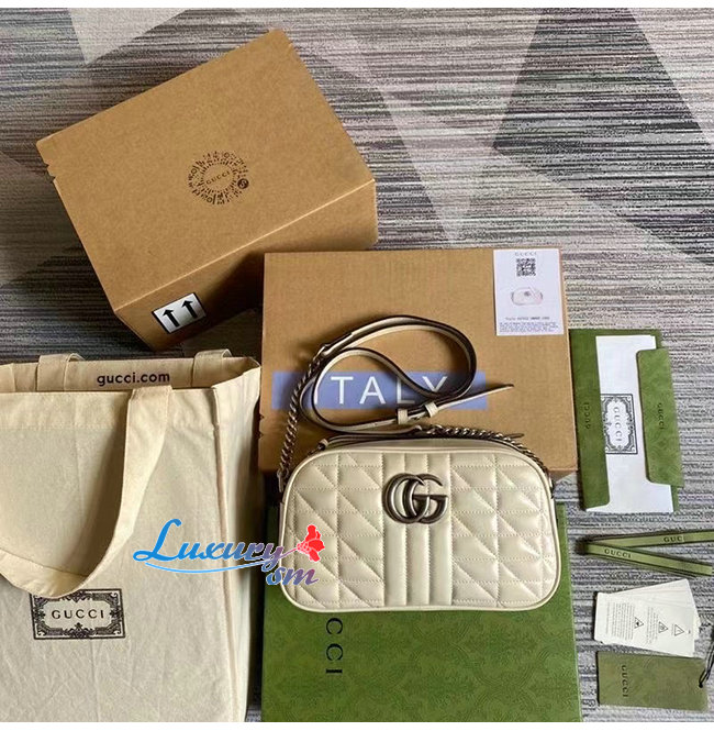 [스페셜오더]GUCCI-447632 9022 구찌 GG 마몽 화이트 가죽 스몰 숄더백