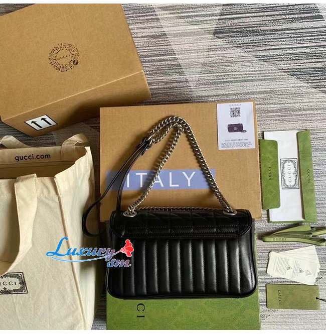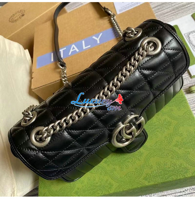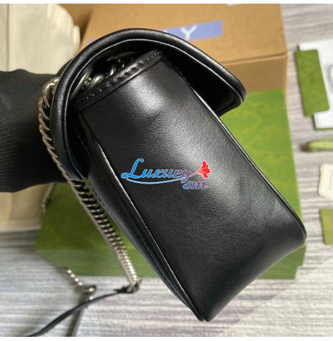 [스페셜오더]GUCCI-443497 8277 구찌 GG 마몽 블랙 사선형 마틀라세 가죽 스몰 숄더백