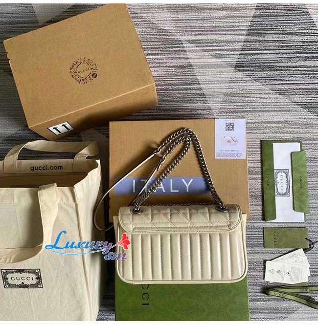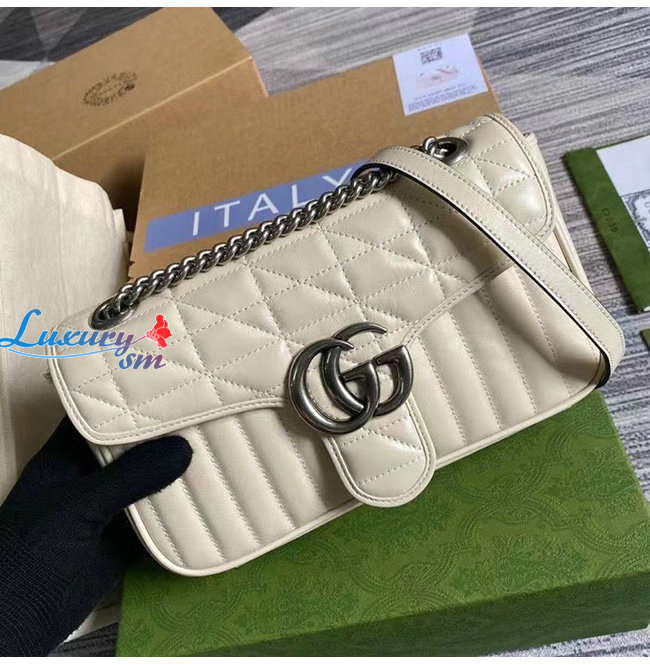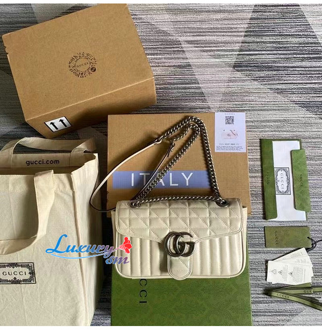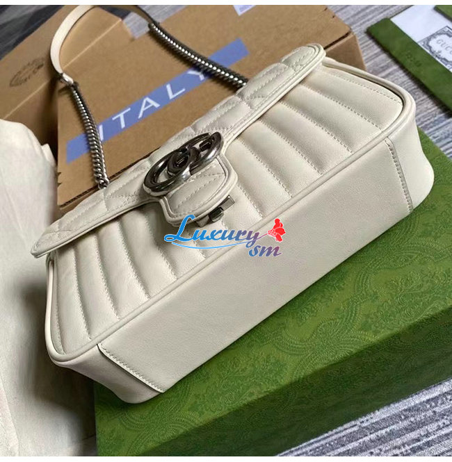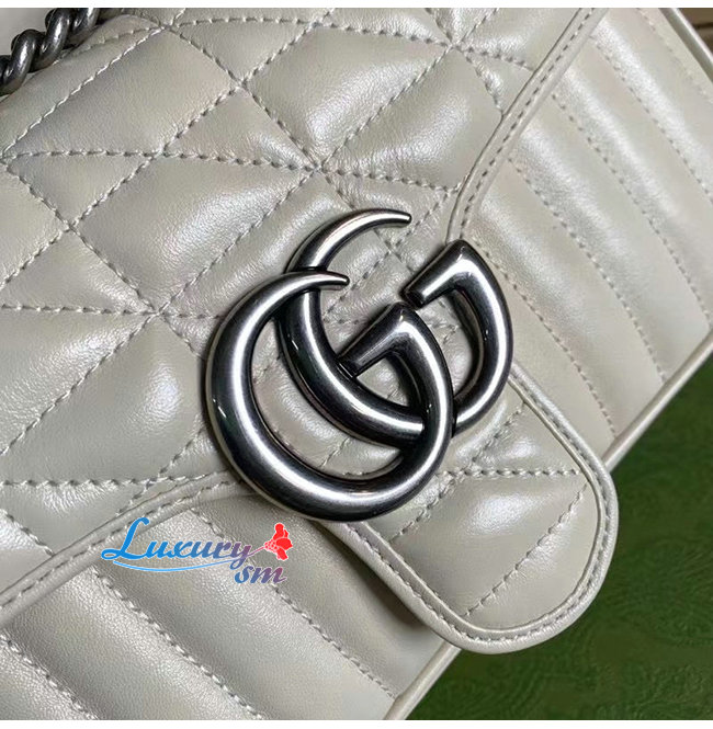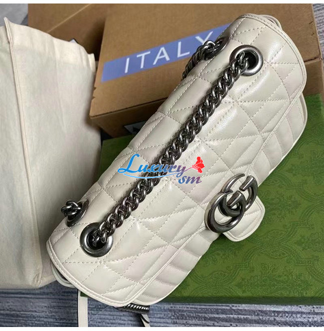 [스페셜오더]GUCCI-443497 9085 구찌 화이트 사선형 마틀라세 퀼트 GG 마몽 스몰 숄더백