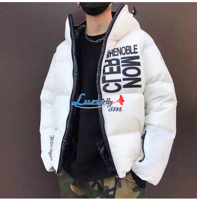 MONCLER-10162 몽클레어 화이트 나일론 프린트 장식 패딩 남성용