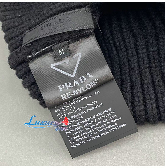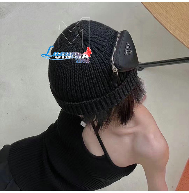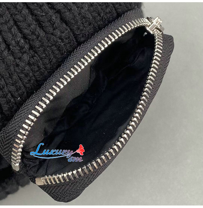 PRADA-10201 프라다 블랙 니트 코튼 트라이앵글 로고 포켓 장식 비니 여성용