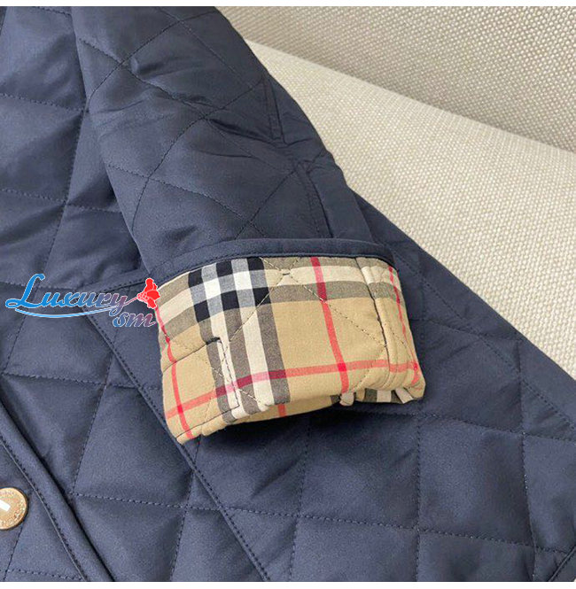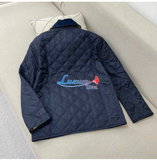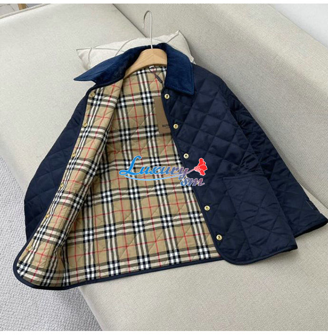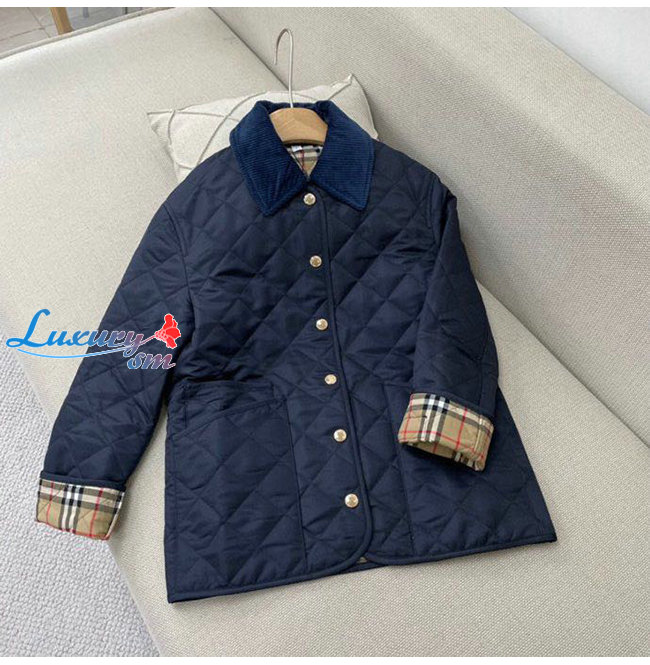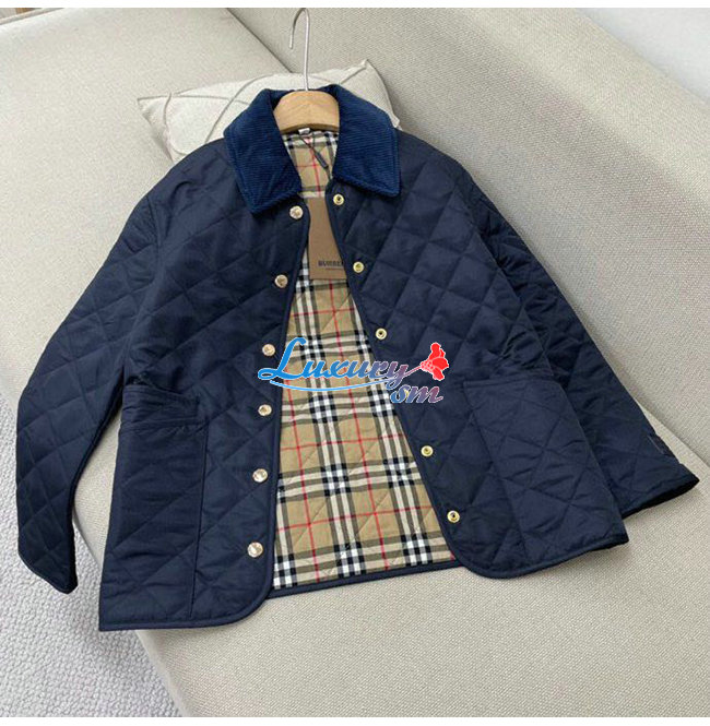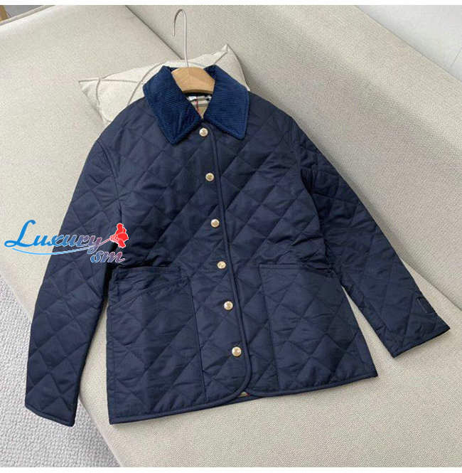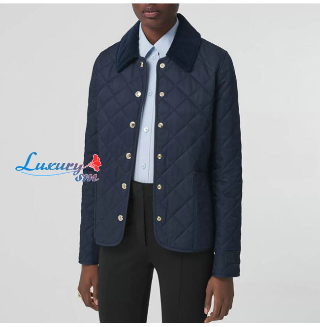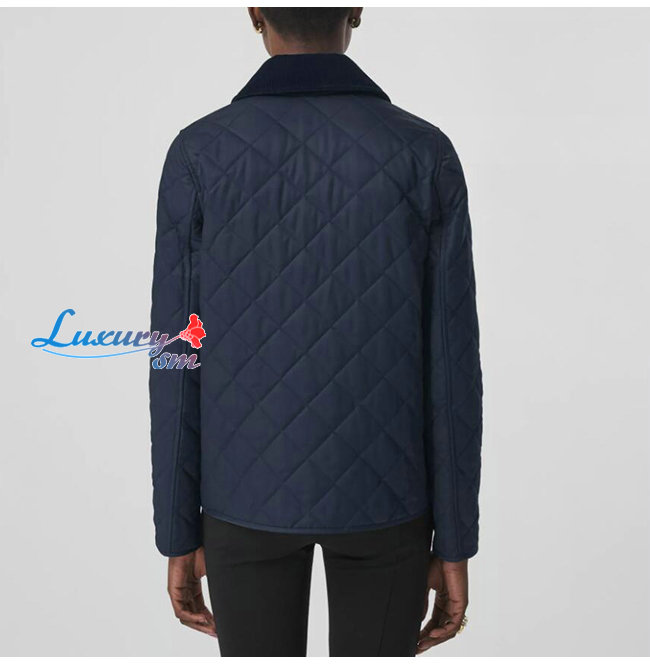 BURBERRY-80392241 버버리 네이비 코듀로이 칼라 다이아몬드 퀼팅 재킷 여성용