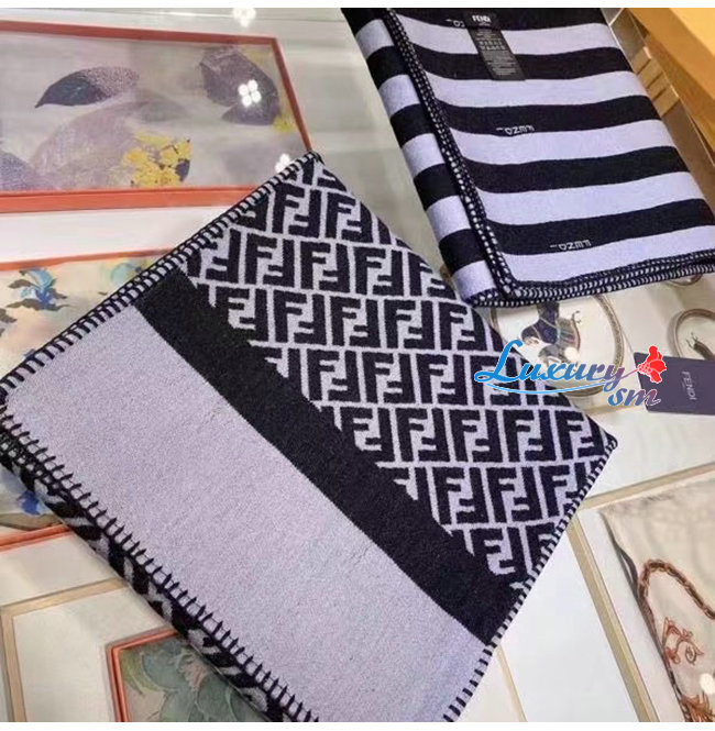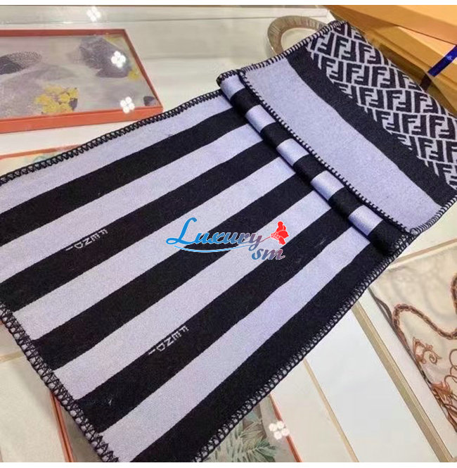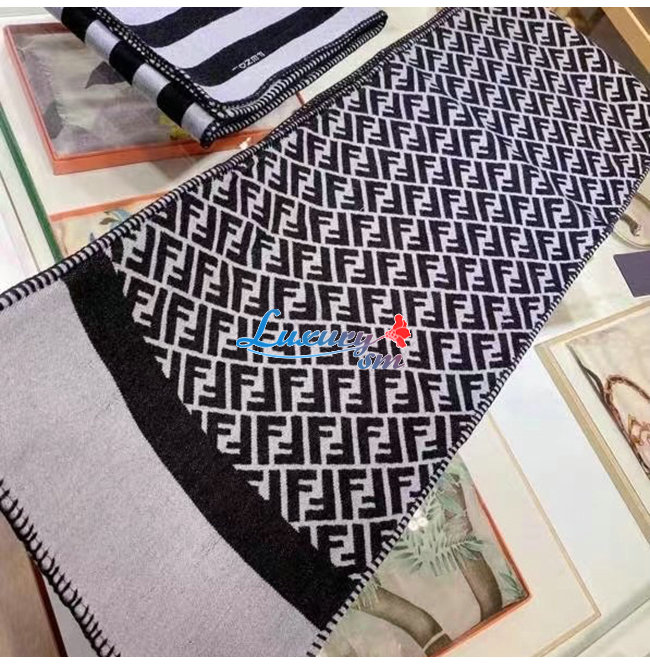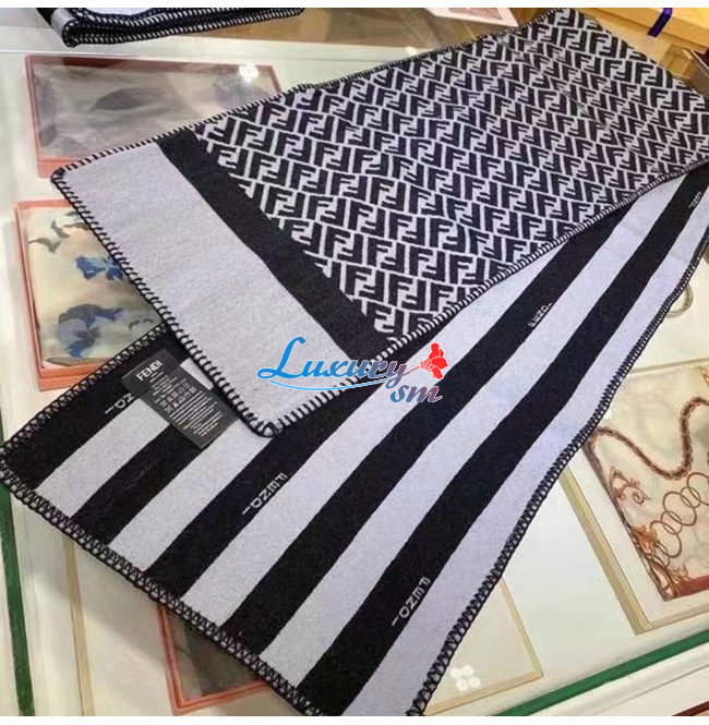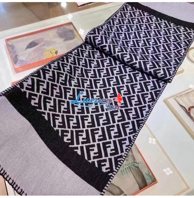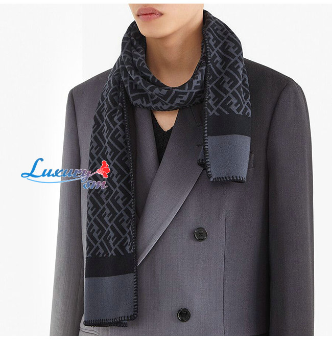 FENDI-FXS124 펜디 블랙 울 더블 F 스카프