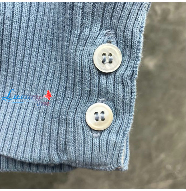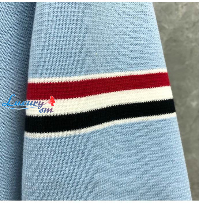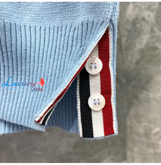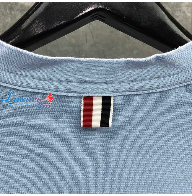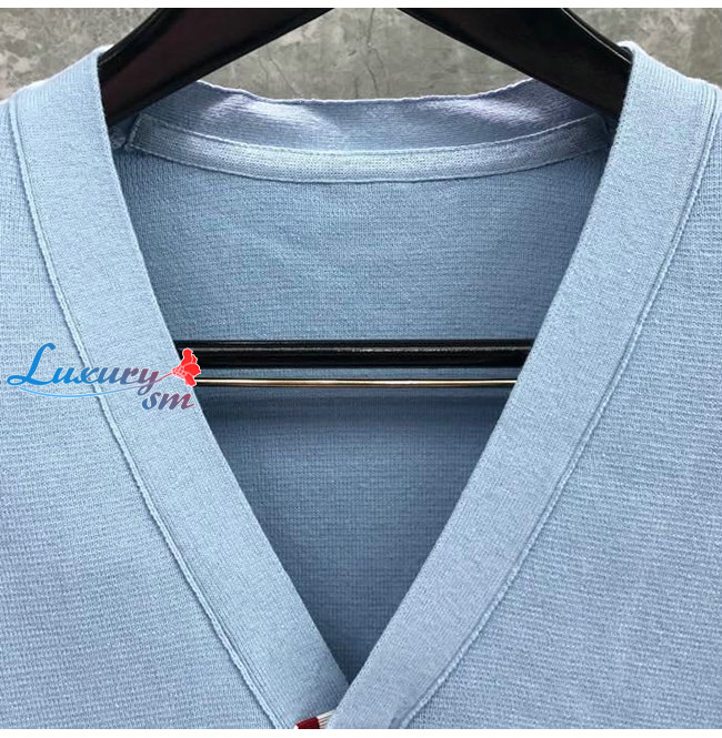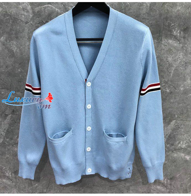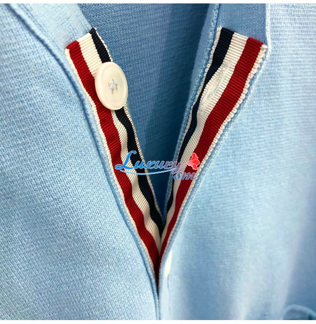 THOM BROWNE-11149 톰 브라운 라이트 블루 니트 코튼 스트라이프 장식 가디건 남성용