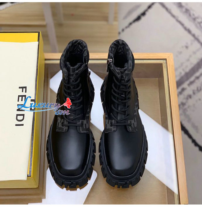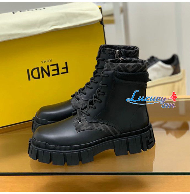 펜디 포스 레이스업 앵클 부츠 블랙 가죽 소재