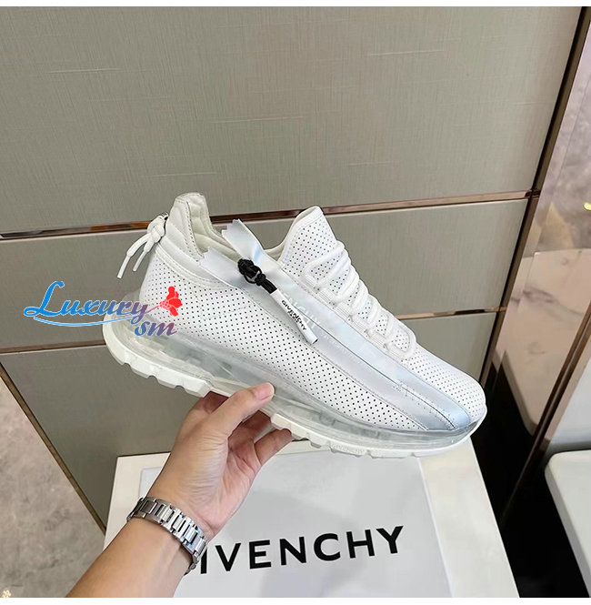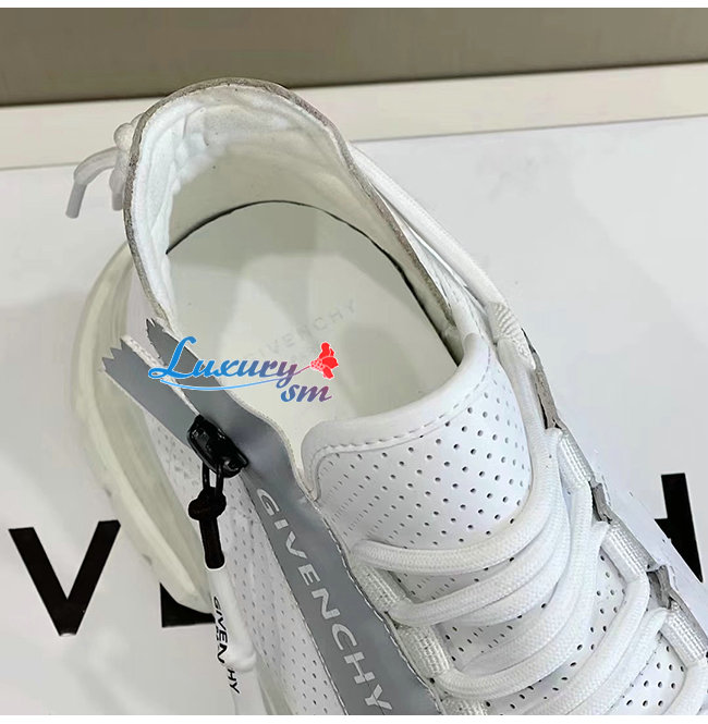 [스페셜오더]GIVENCHY-BH003MH 지방시 화이트 스펙터 지퍼 장식 퍼포레이티드 가죽 로우탑 러닝 슈즈 남성용