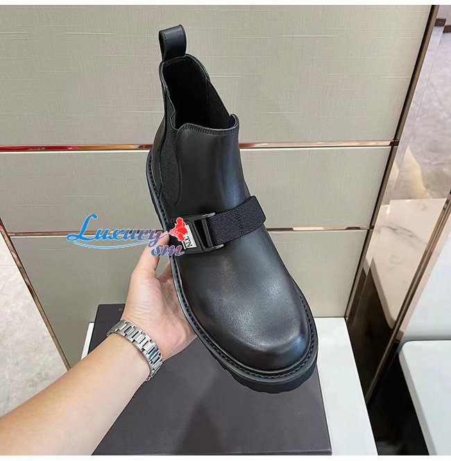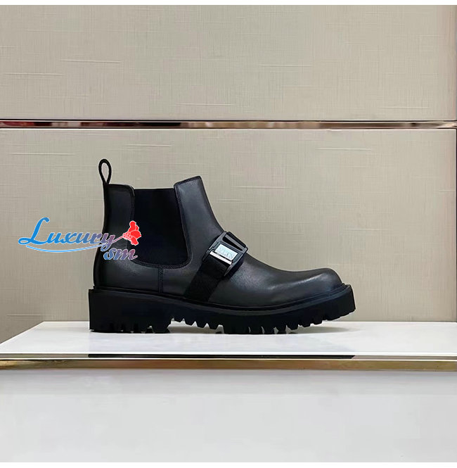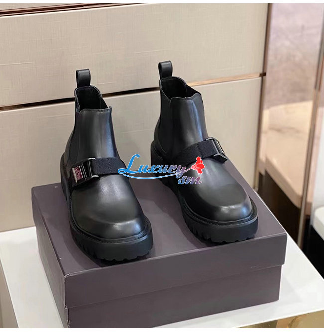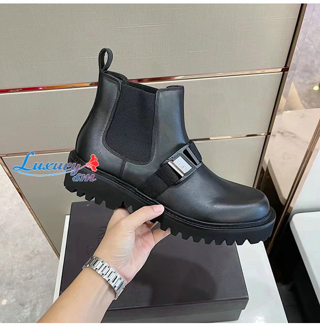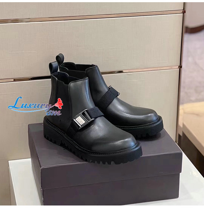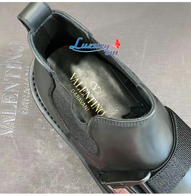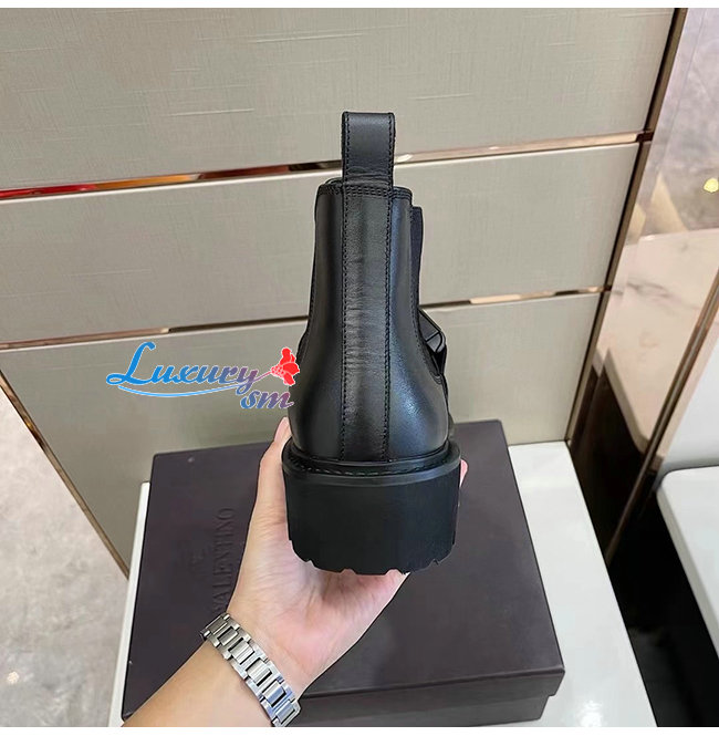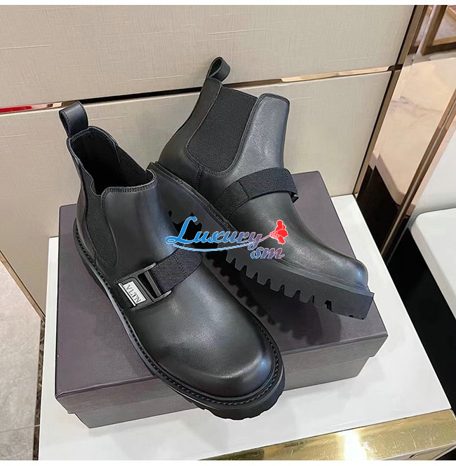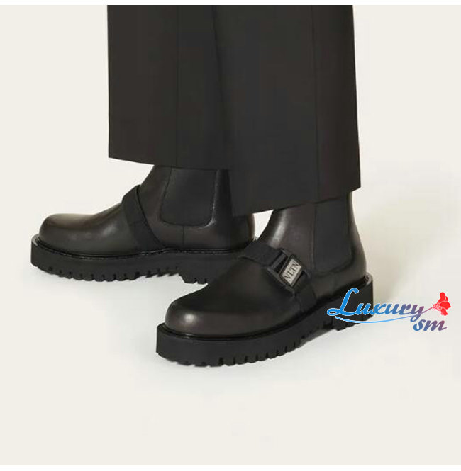 VALENTINO-UY0S0D90 발렌티노 블랙 송아지 가죽 VLTN 버클 디테일 비틀 부츠 남성용