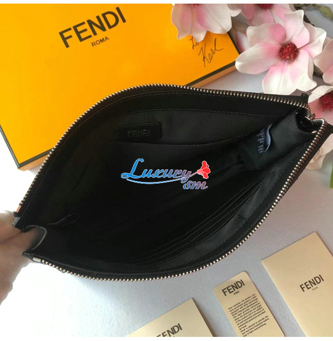 [스페셜오더]FENDI-7VA491 펜디 블랙/브라운 송아지 가죽 더블 F 디테일 플랫 파우치